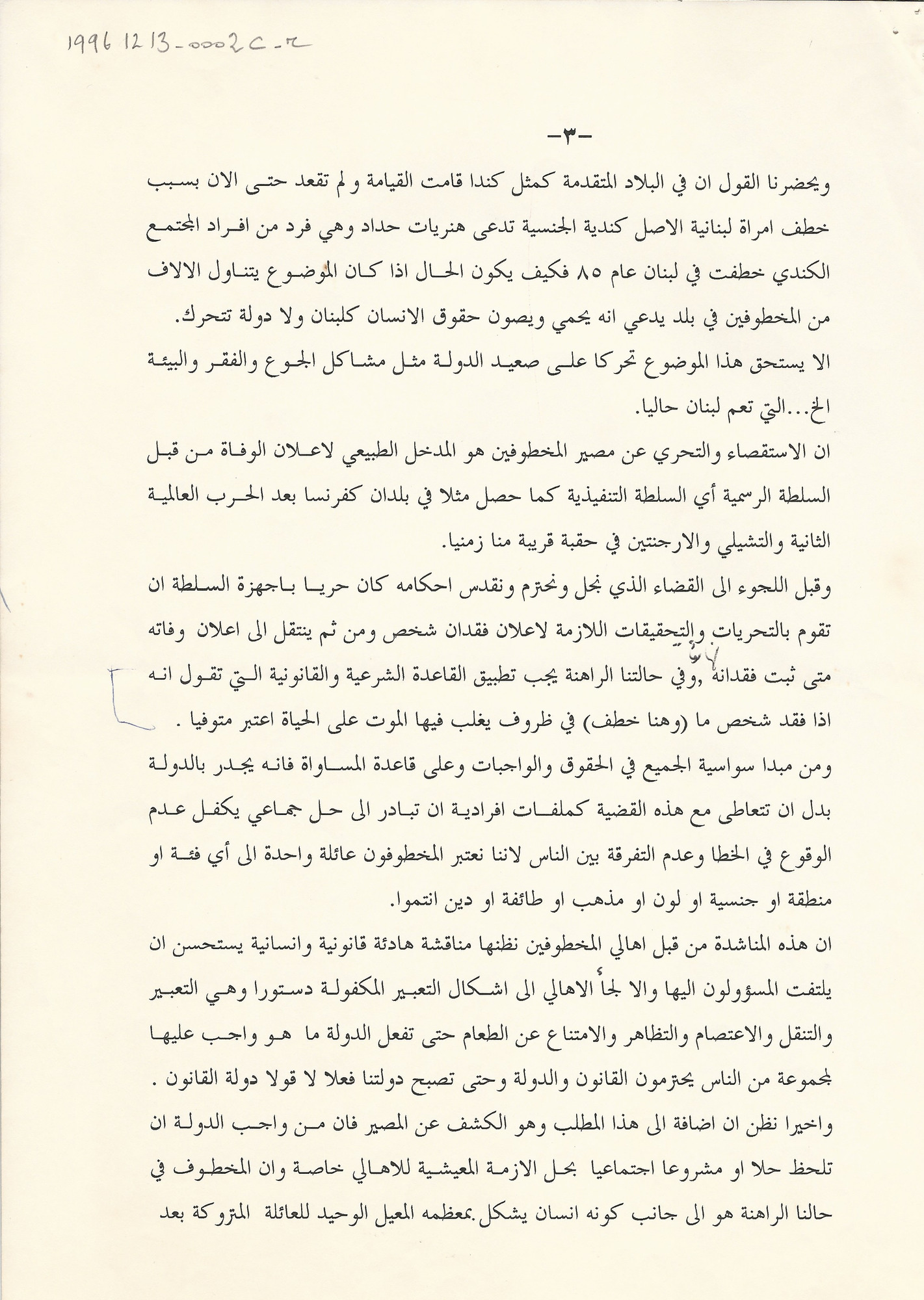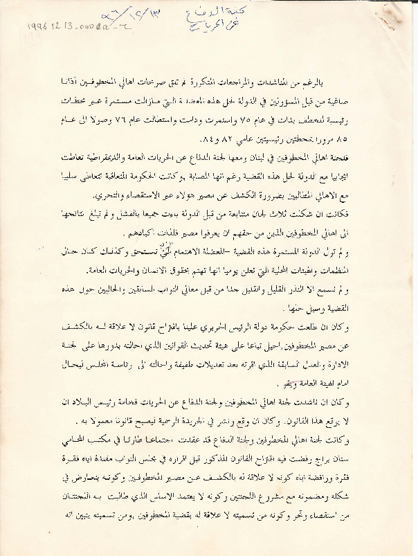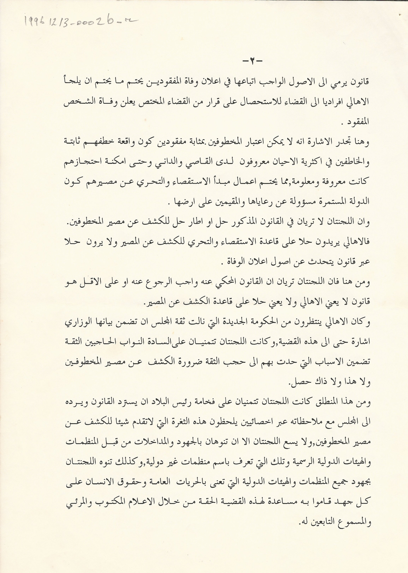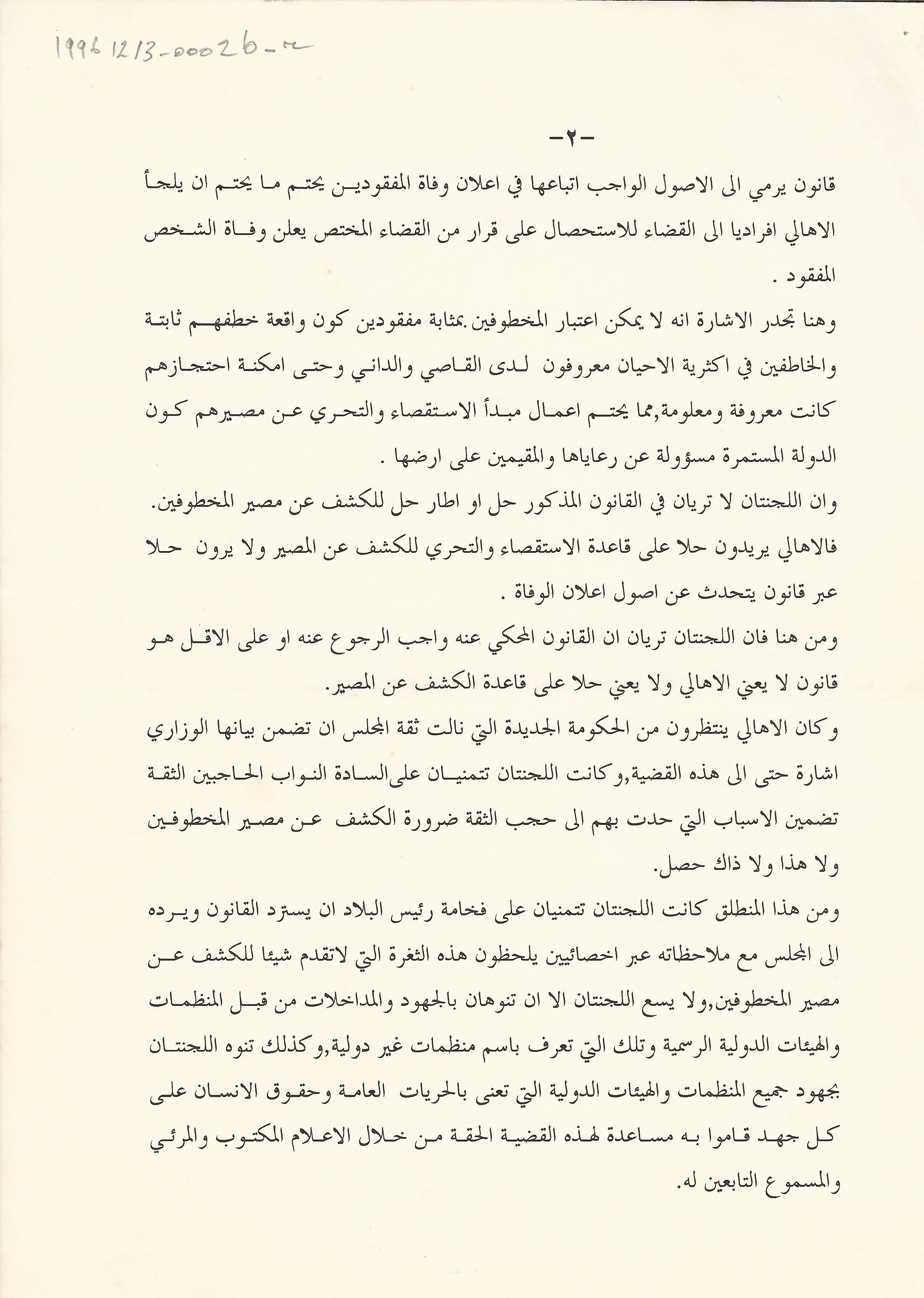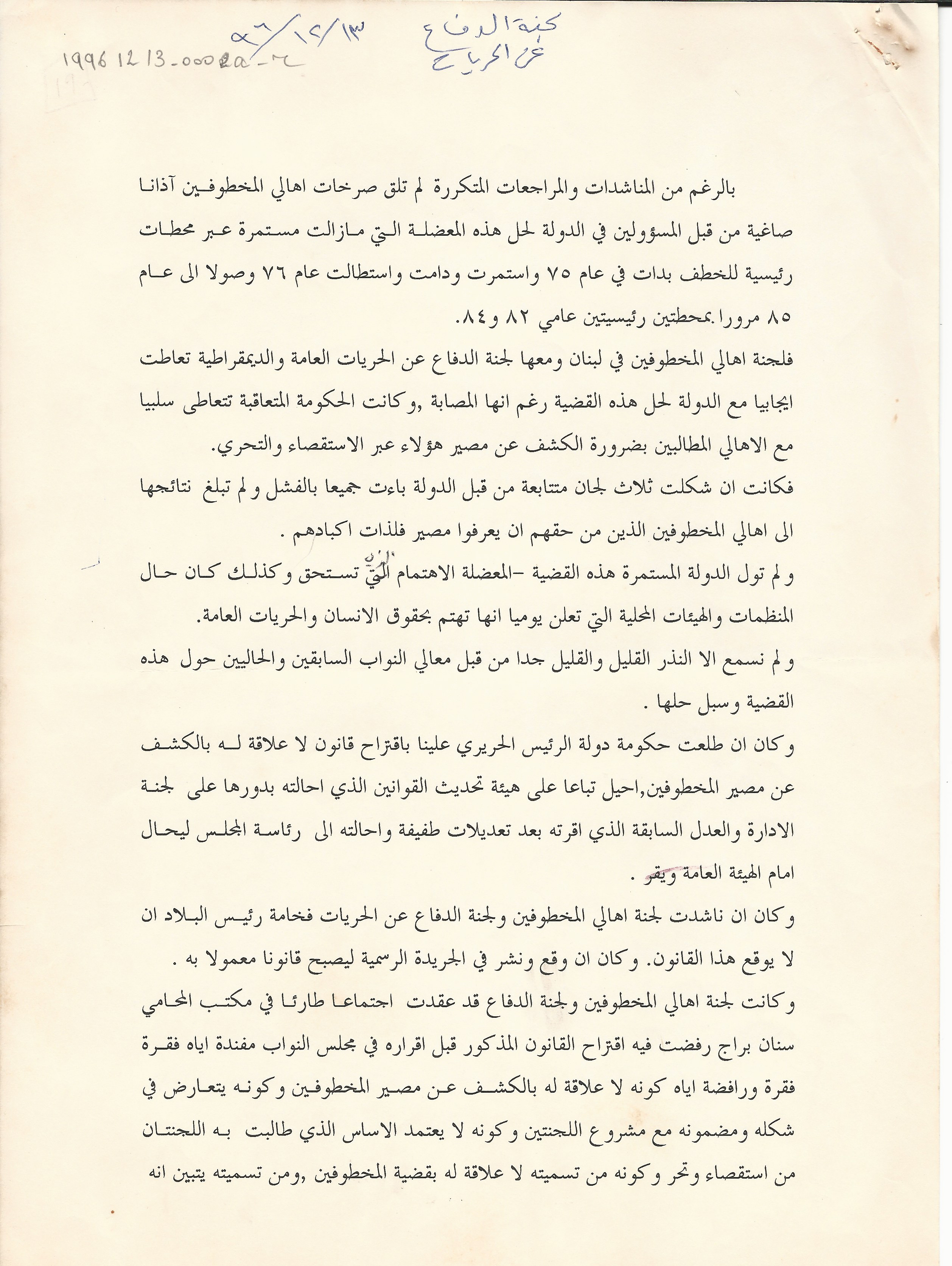 بيان مشترك للجنة اهالي المخطوفين والمفقودين في لبنان و لجنة الدفاع عن الحريات بشان القانون المتعلق بالاصول الواجب اتباعها لاعلان وفاة المفقودين