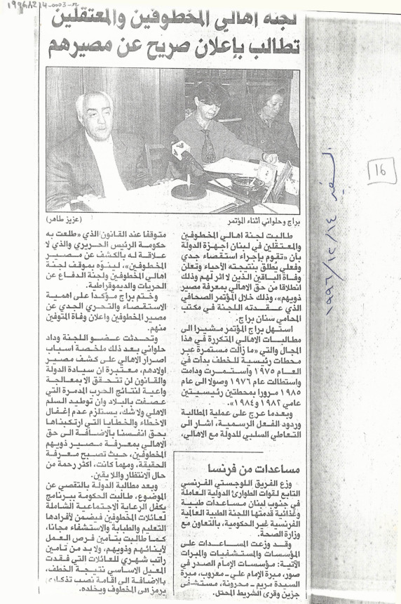 لجنة اهالي المخطوفين والمعتقلين تطالب باعلان صريح عن مصيرهم