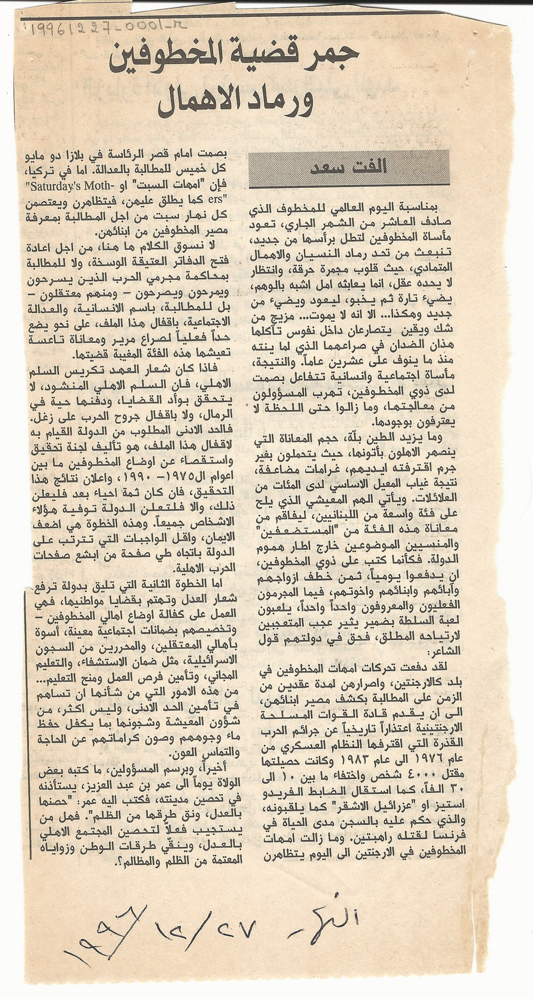 - ar جمر قضية المخطوفين ورماد الاهمال