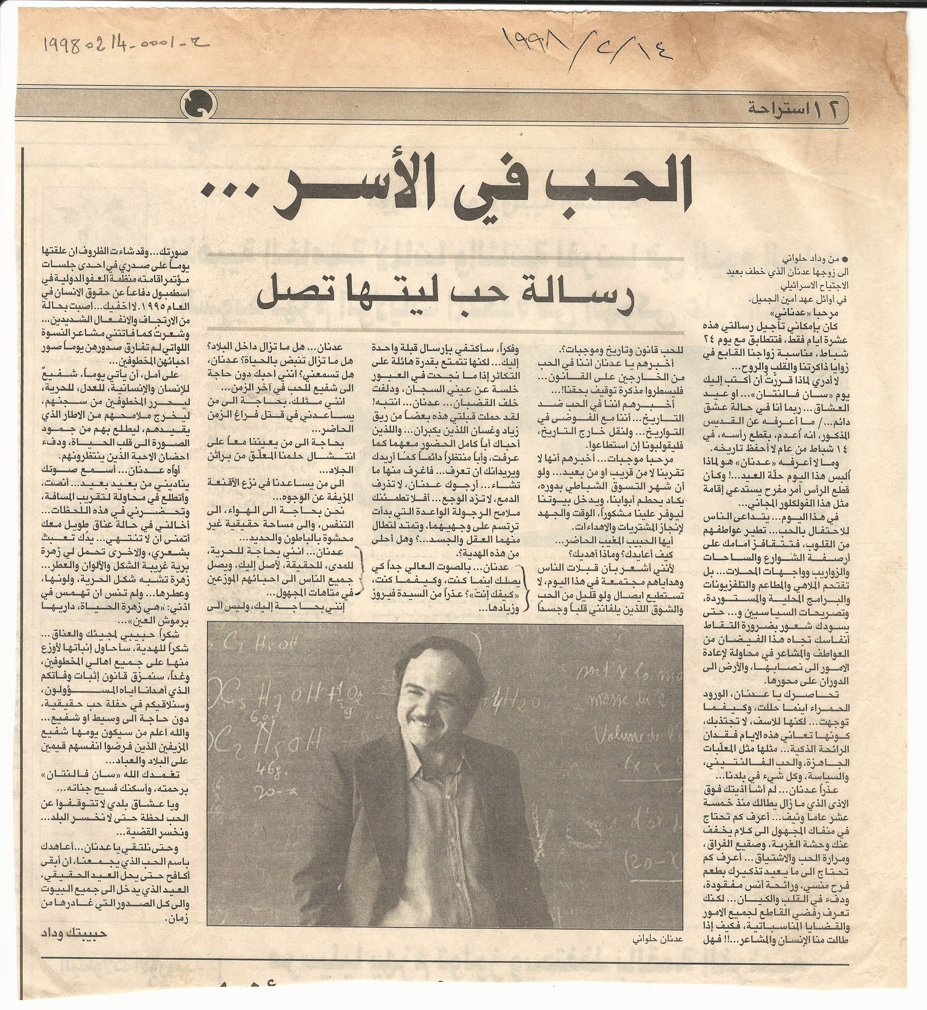 - ar الحب في الاسر، رسالة حب ليتها تصل