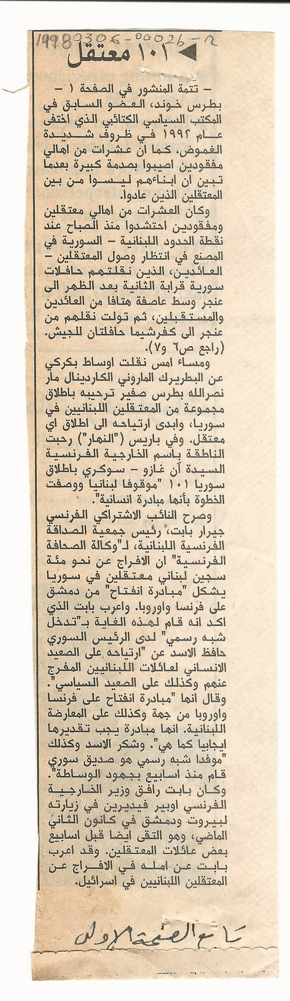 فرنسا و بكركي ترحبان بالمبادرة السورية: 101 معتقل عادوا واليوم يطلق معظمهم