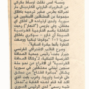 France and Bkirki welcome the Syrian initiative: 101 detainees have returned and most of them will be released today.
