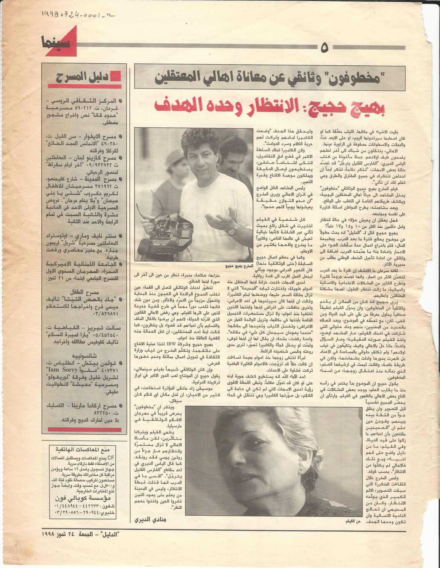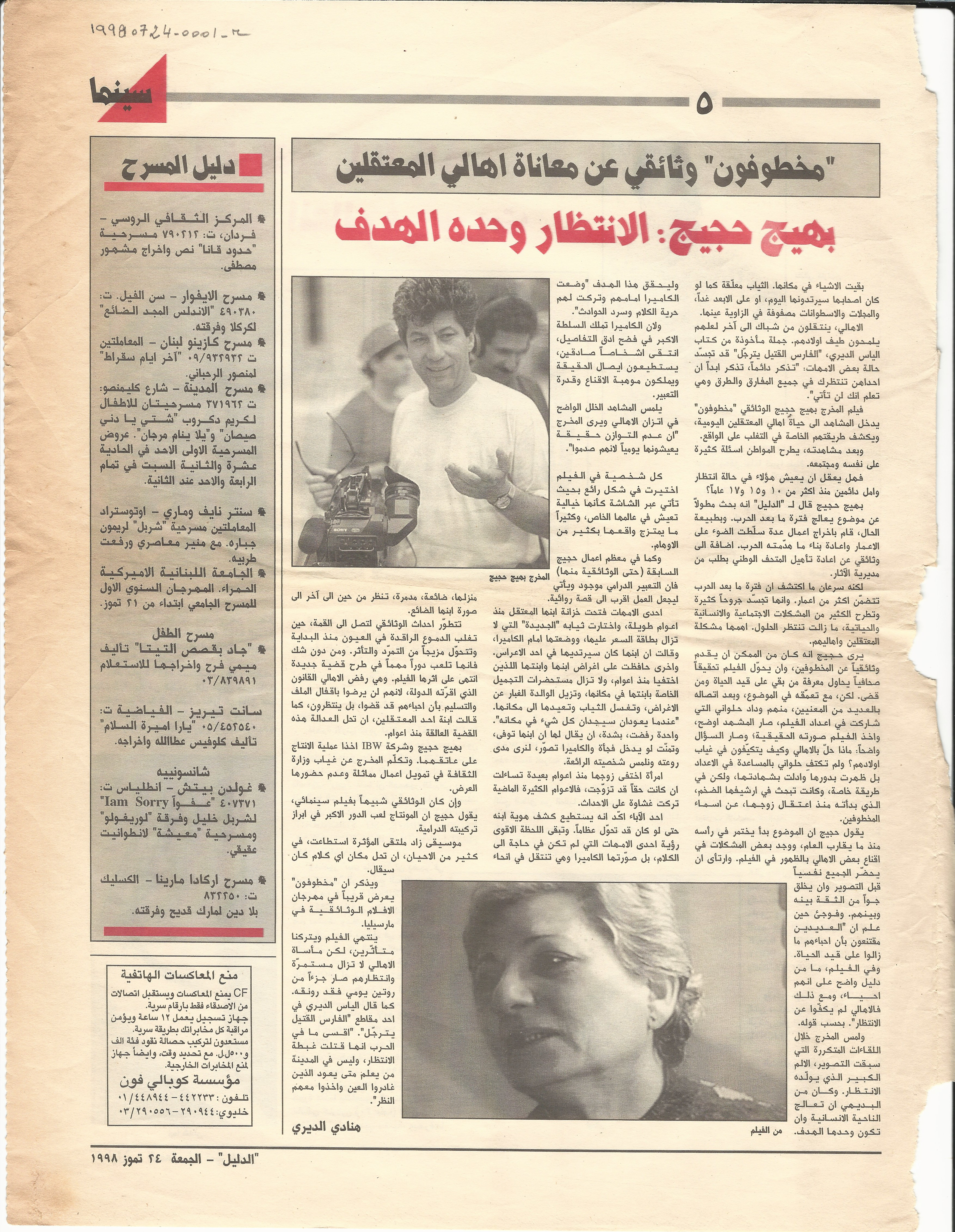 - en “The Kidnapped”: a documentary on the sufferings of the families of the detained. Bahij Hojeij: waiting is what we aim for.