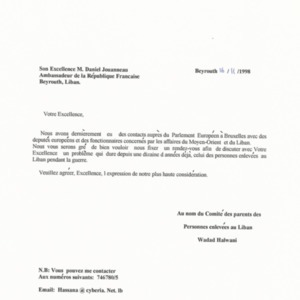 Demande de Rendez-vous de son Excellence M. Daniel Jouanneau, Ambassadeur de la Republique Francaise au Liban