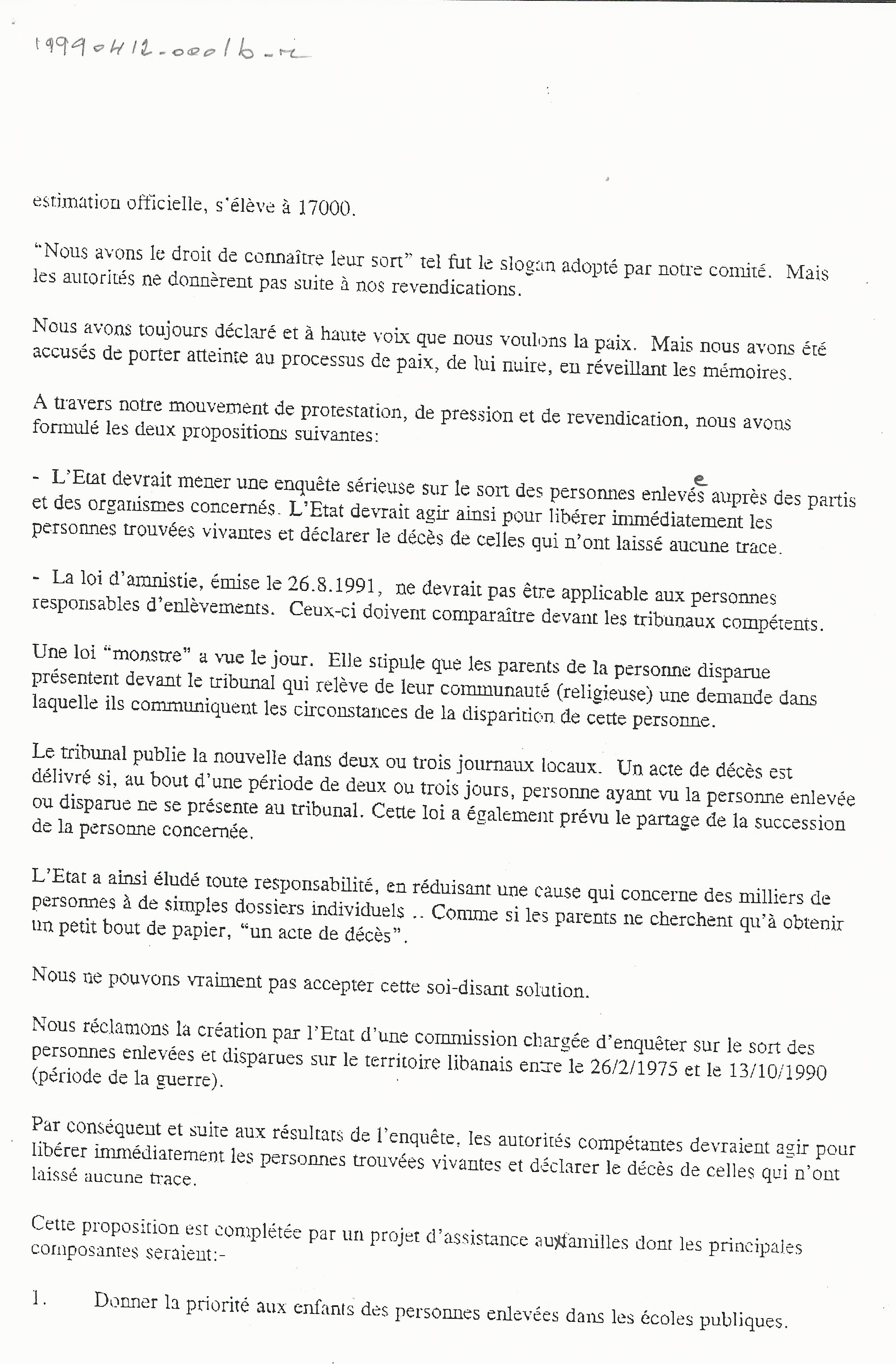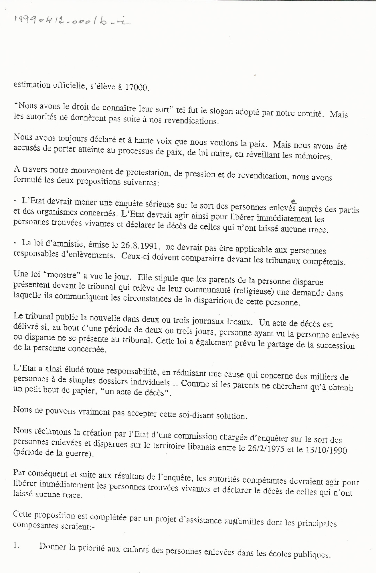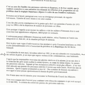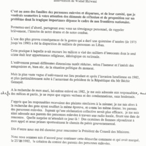 Les personnes enlevees et disparues au Liban: Intervention de Wadad Halwani