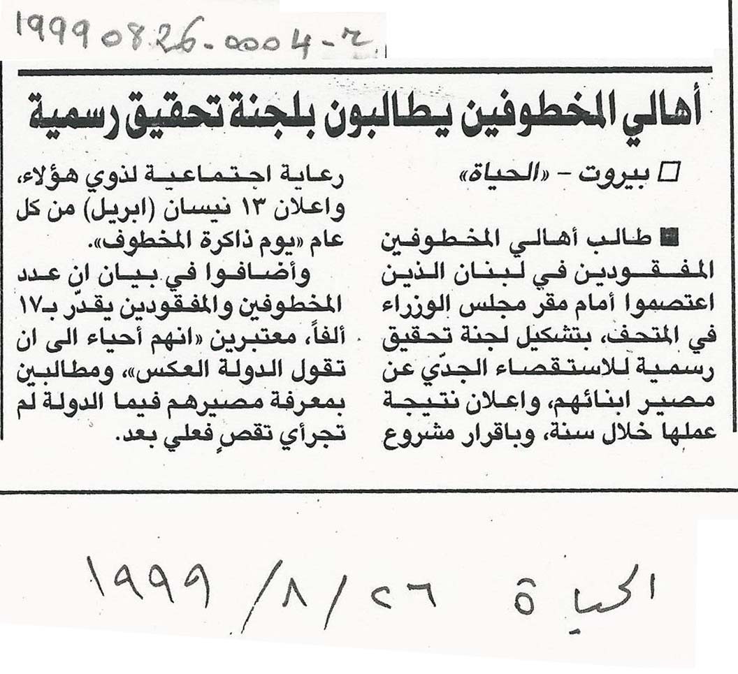 - ar اهالي المخطوفين يطالبون بلجنة تحقيق رسمية