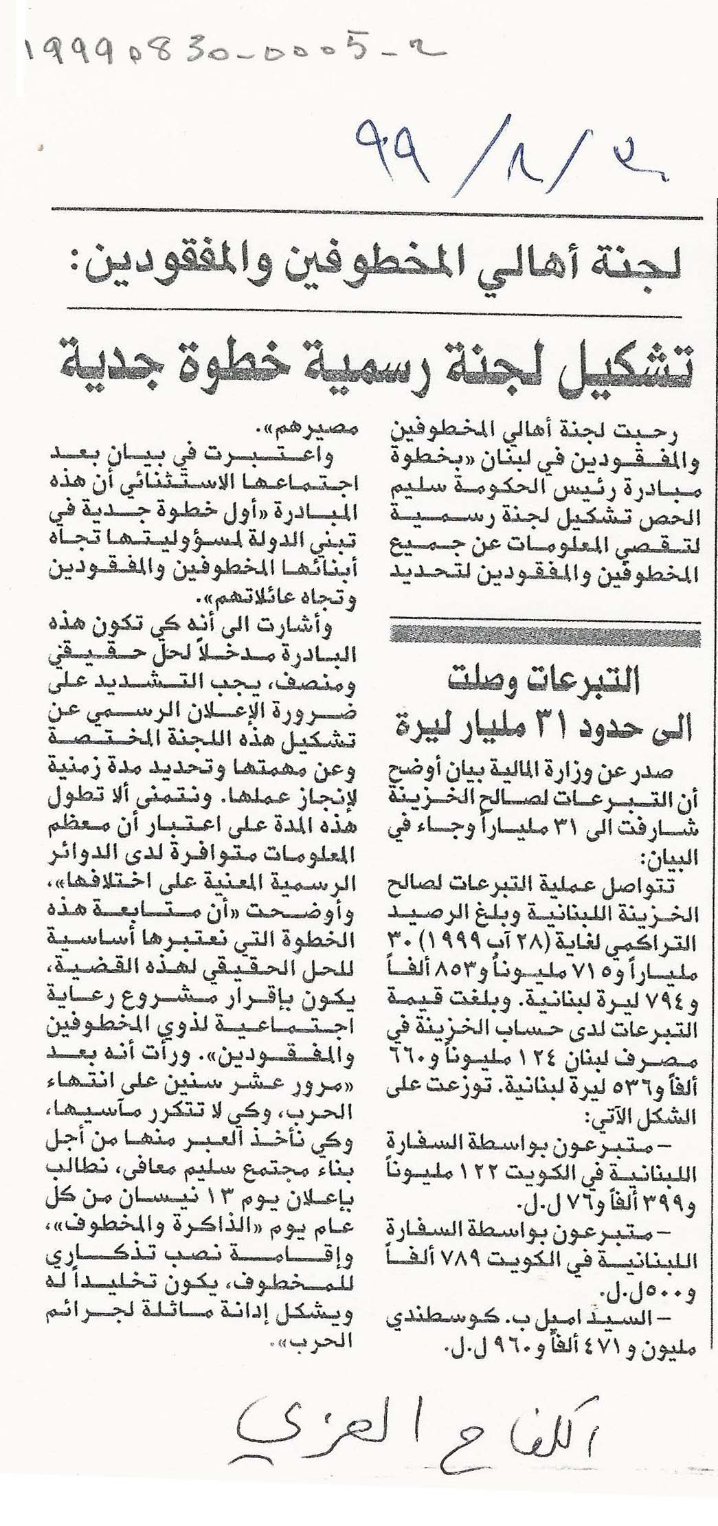 - ar لجنة اهالي المخطوفين والمفقودين: تشكيل لجنة رسمية خطوة جديدة