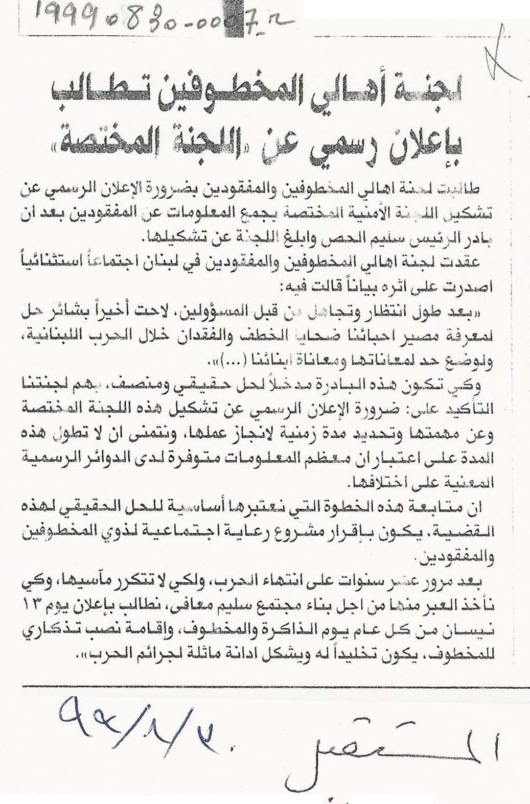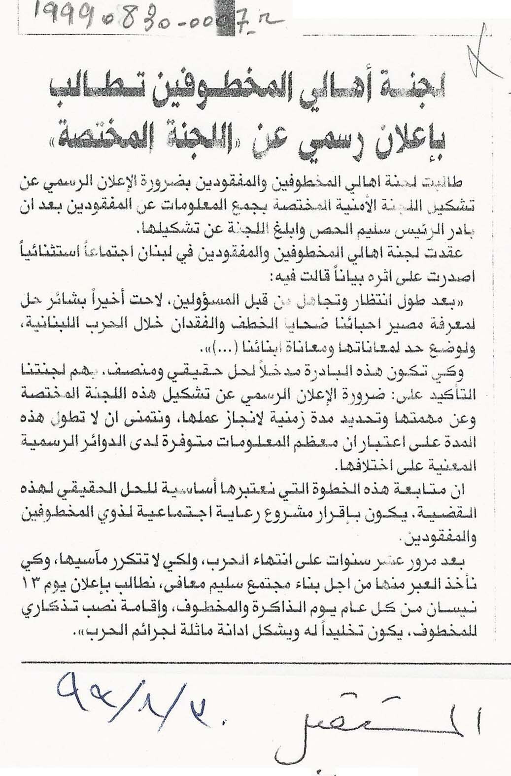 - ar لجنة اهالي المخطوفين تطالب باعلان رسمي عن اللجنة المختصة