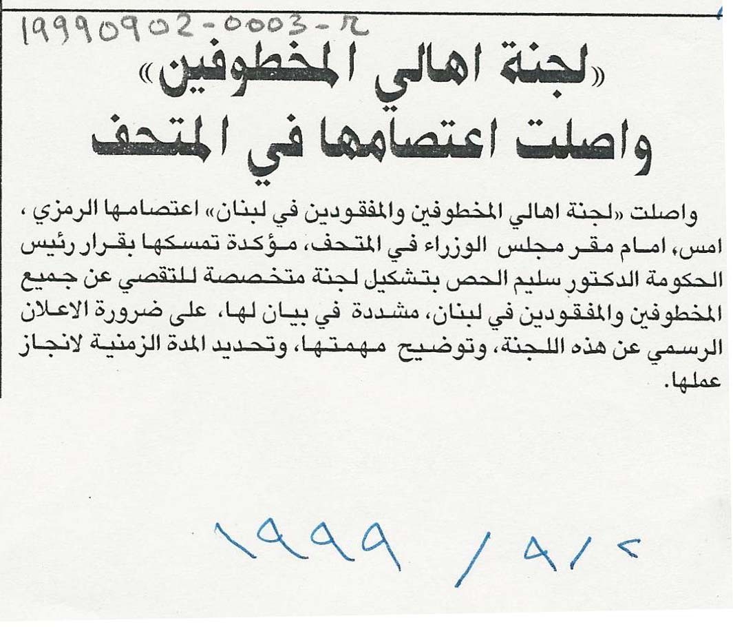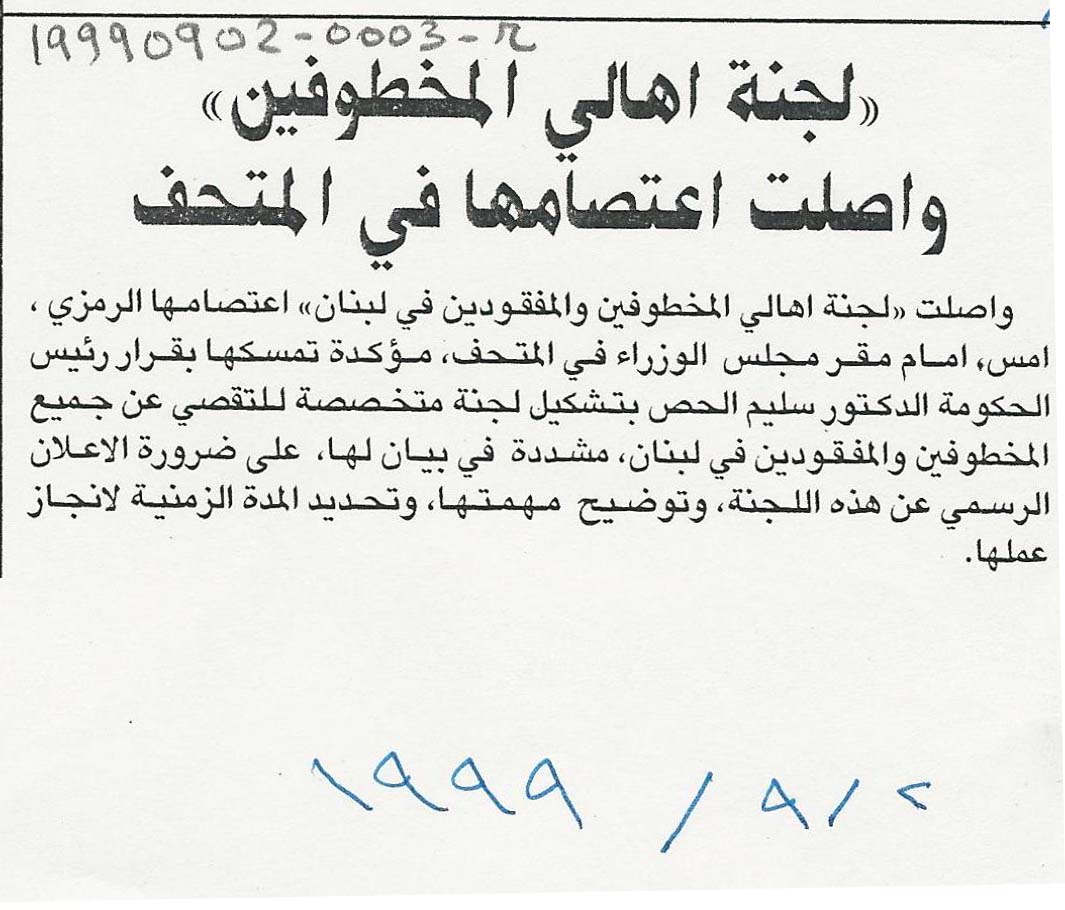 - ar لجنة اهالي المخطوفين واصلت اعتصامها في المتحف