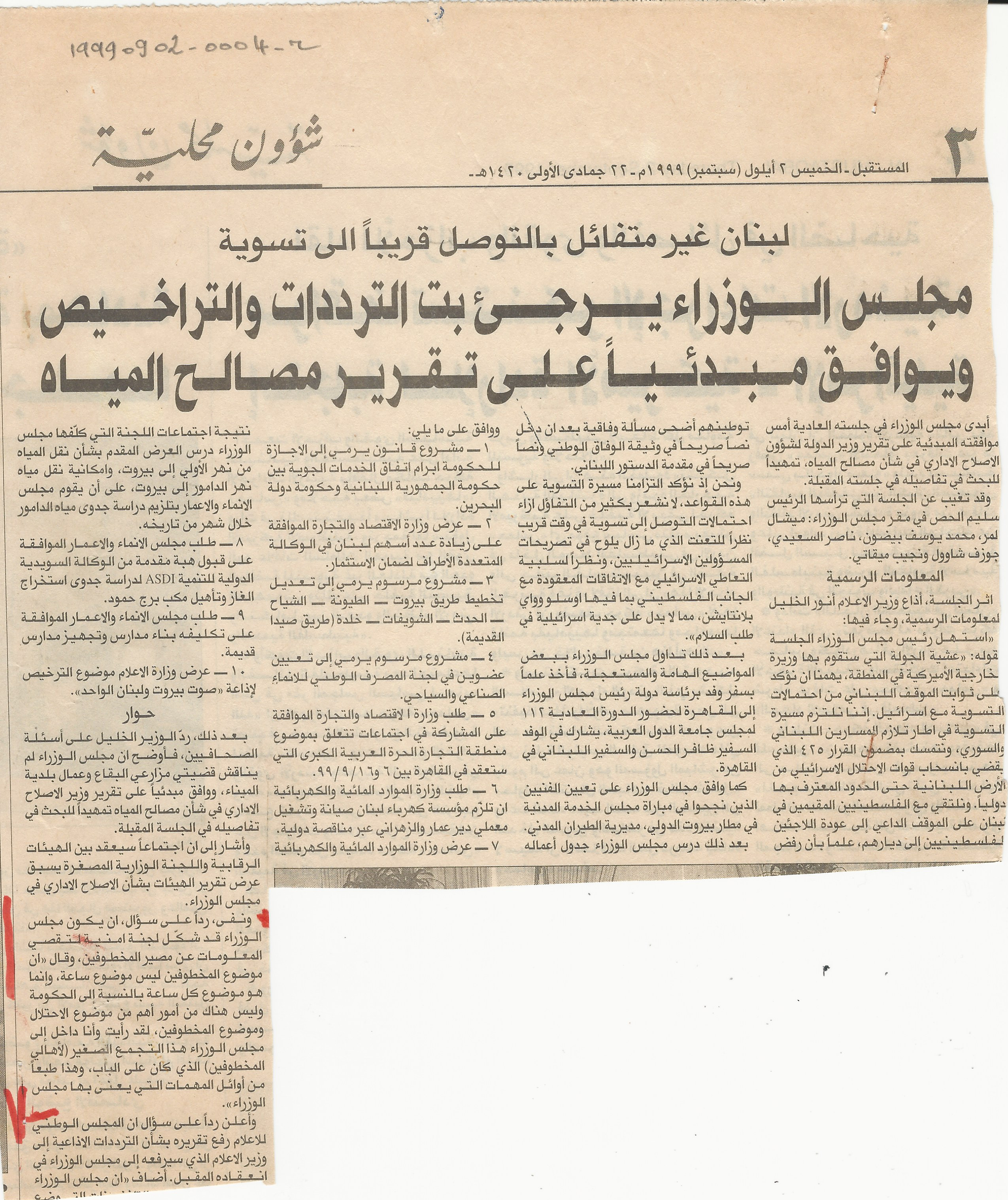 The Cabinet of Ministers defers the decisions on frequencies and permits and gives initial approval on the report of the Establishment of the Water.