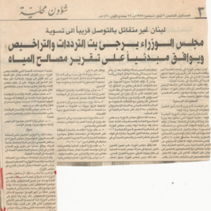 مجلس الوزراء يرجئ بت الترددات والتراخيص ويوافق مبدئيا على تقرير مصالح المياه، لبنان غير متفائل بالتوصل قريبا الى تسوية