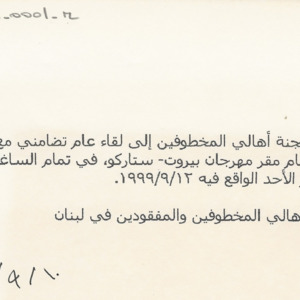 - ar دعوة اصدقاء لجنة اهالي المخطوفين الى لقاء تضامني
