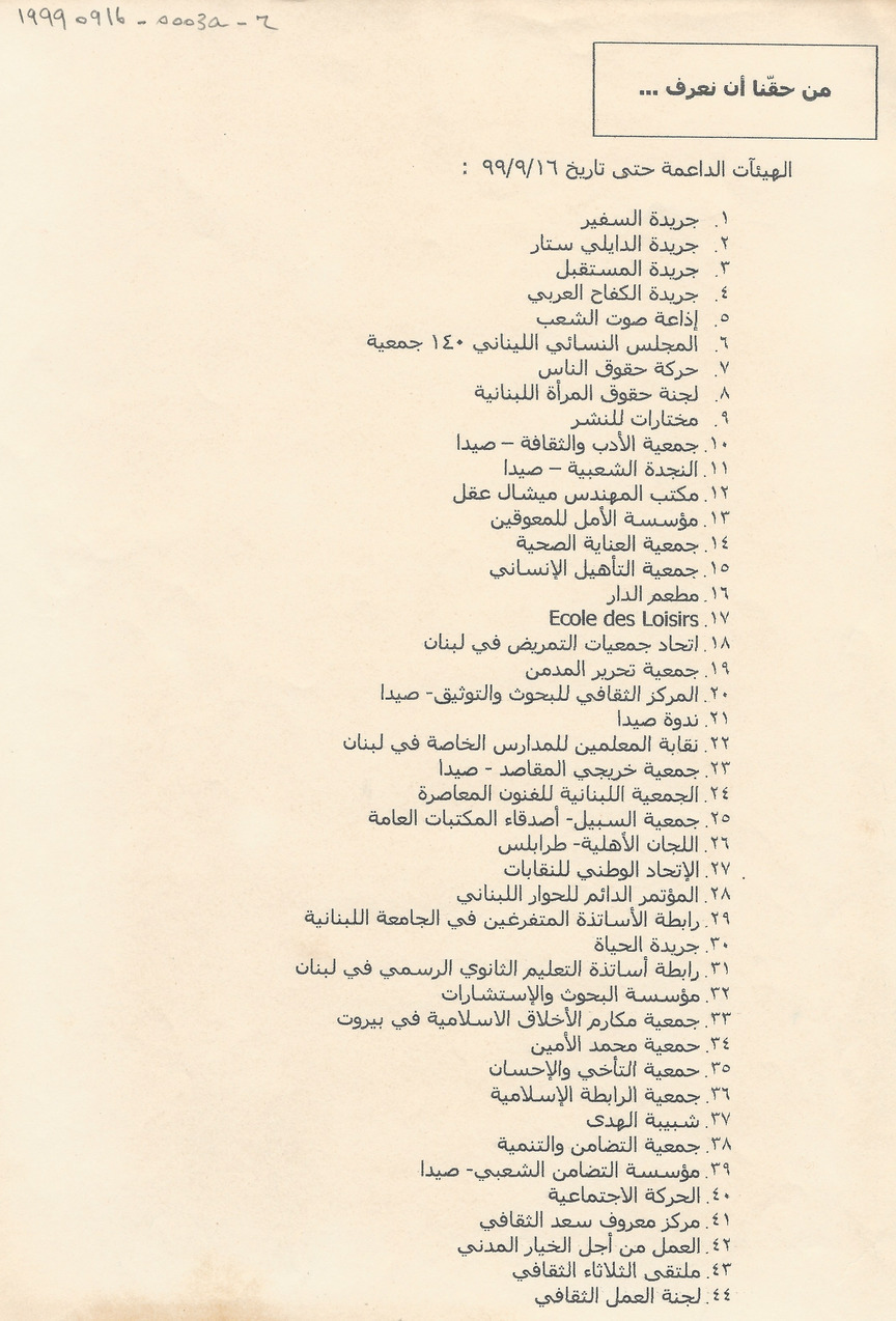- ar لائحة الهيئات الداعمة لحملة من حقنا ان نعرف 1