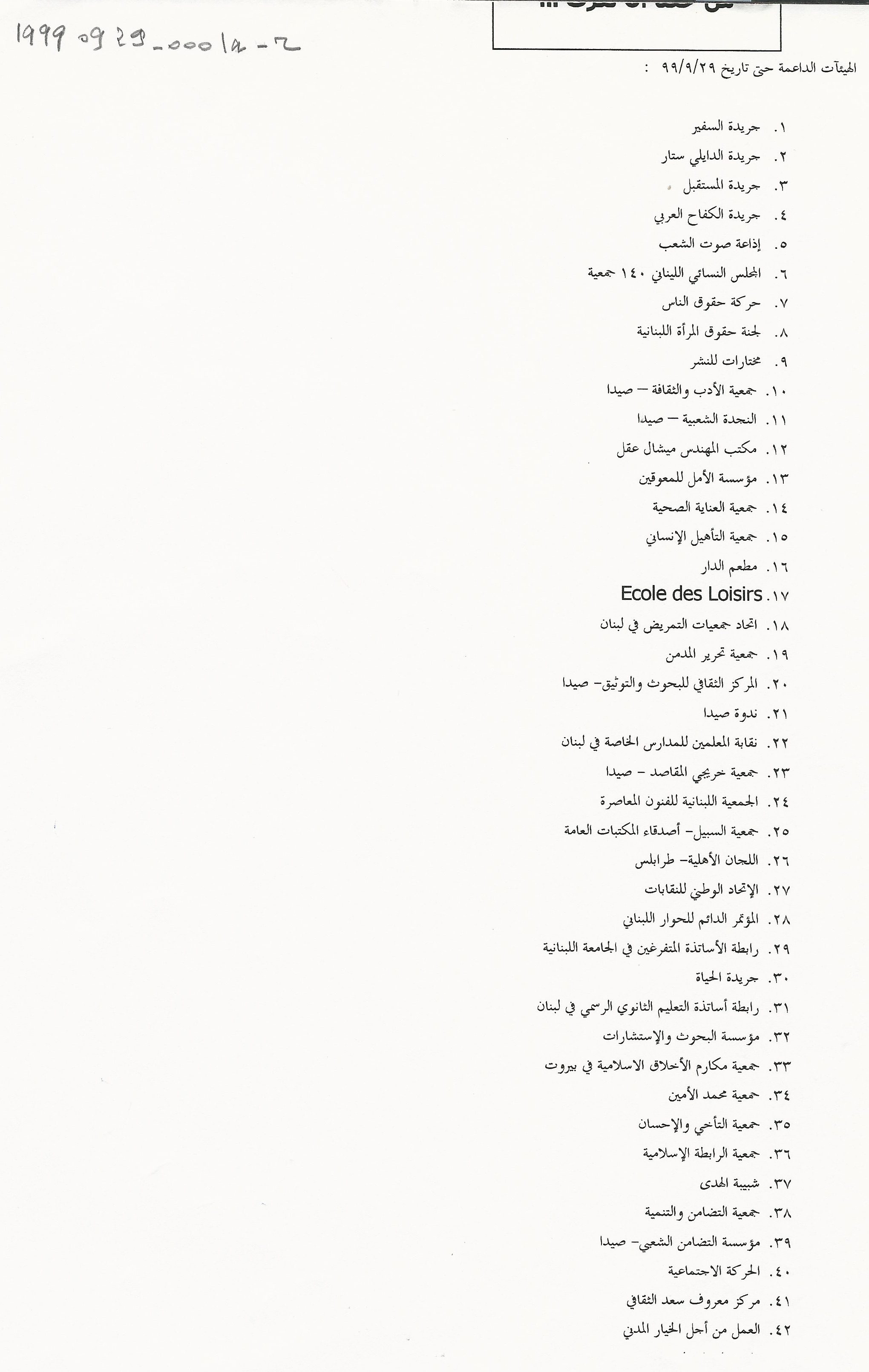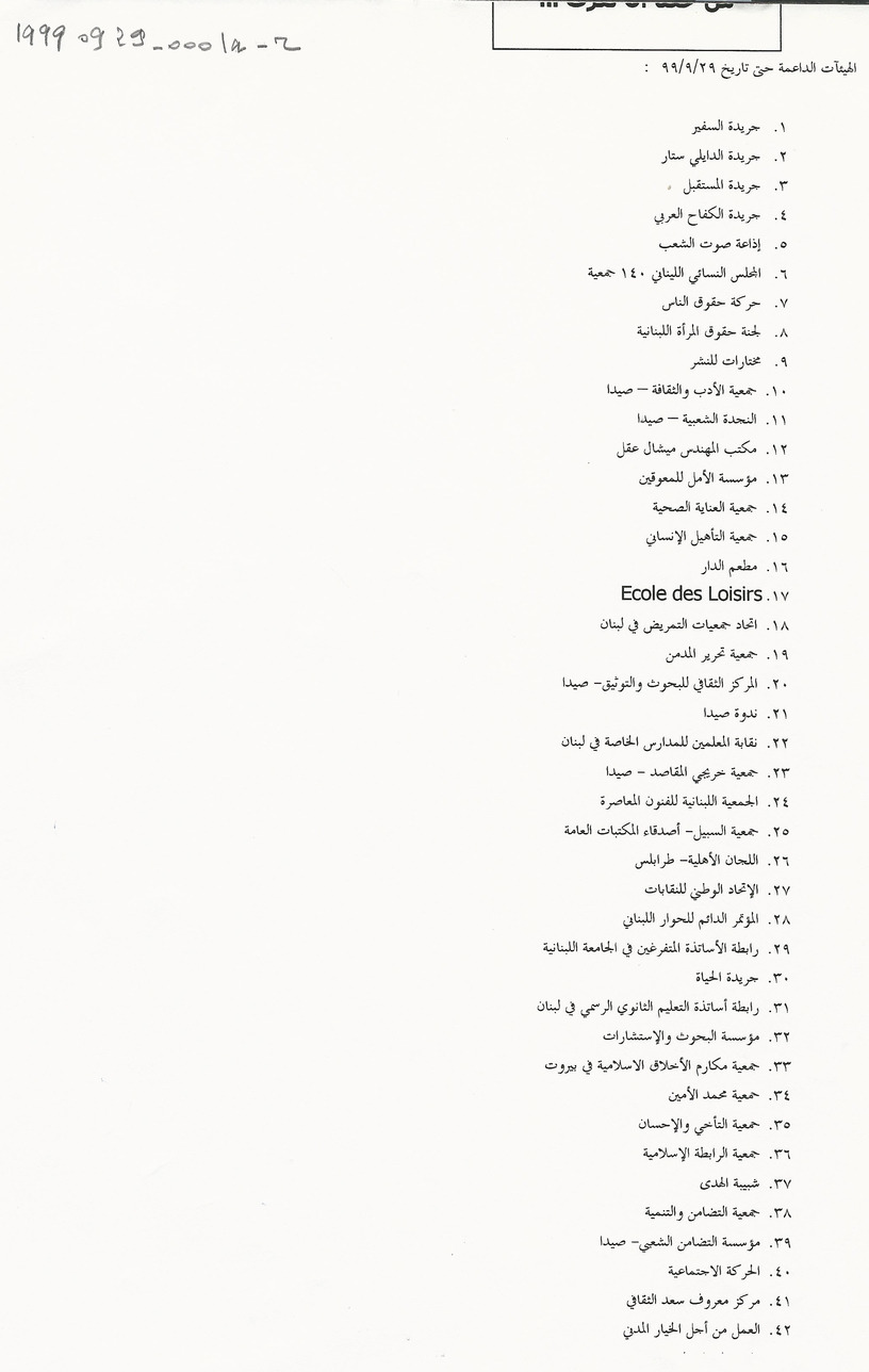 - ar لائحة الهيئات الداعمة لحملة من حقنا ان نعرف 2