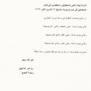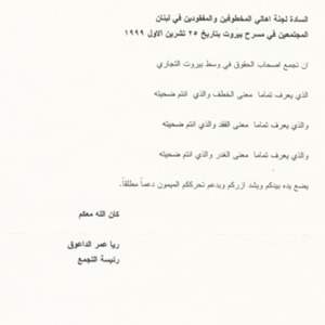 - ar دعم تجمع اصحاب الحقوق في وسط بيروت التجاري لحملة لجنة الأهالي