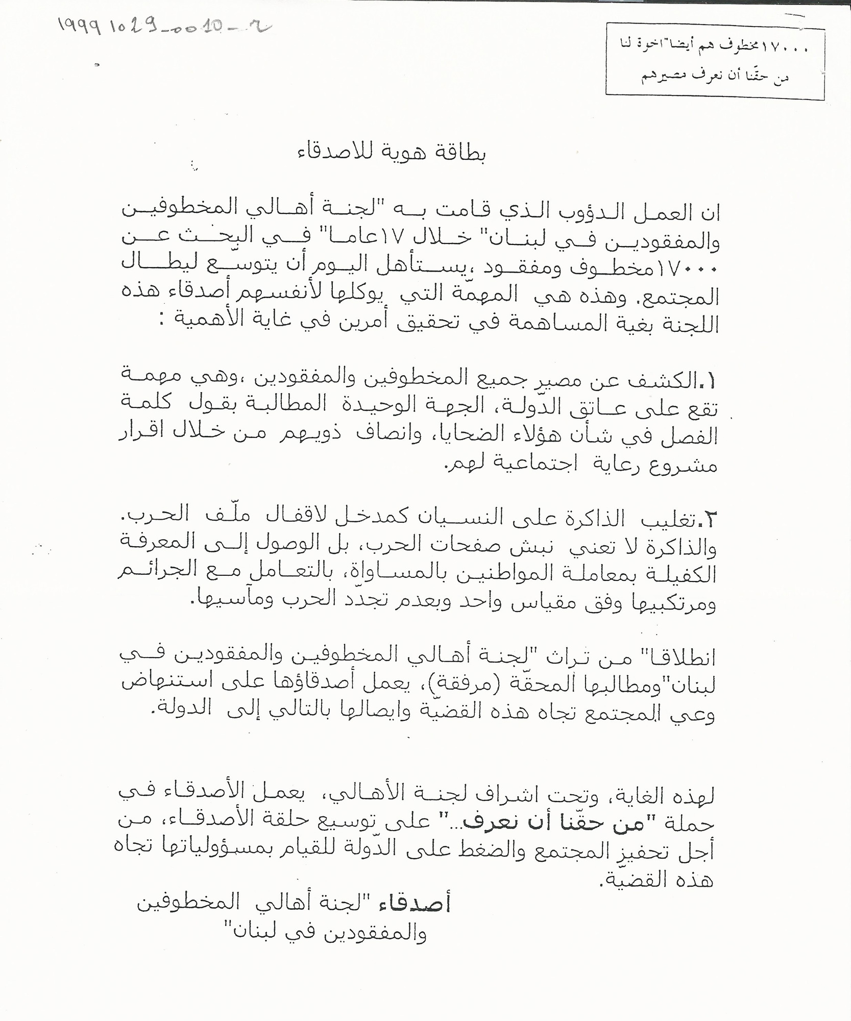 - اصدقاء لجنة اهالي المخطوفين المفقودين في لبنان