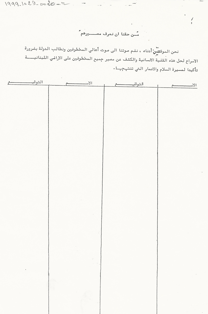 - ar عريضة تضامنية مع قضية المخطوفين والمفقودين