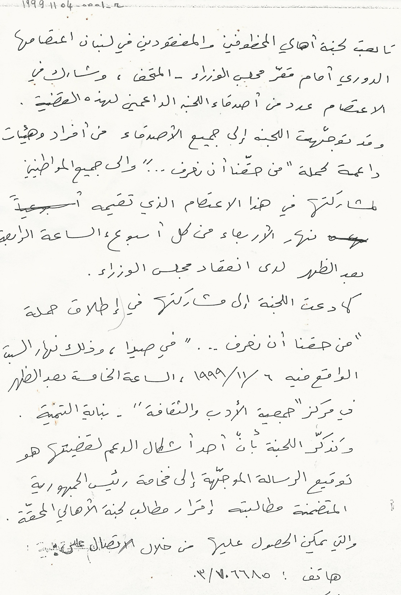 - ar استمرار الاعتصام الدوري للجنة الأهالي واصدقائها