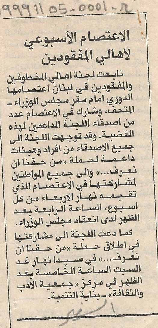 - ar الاعتصام الأسبوعي لأهالي المفقودين