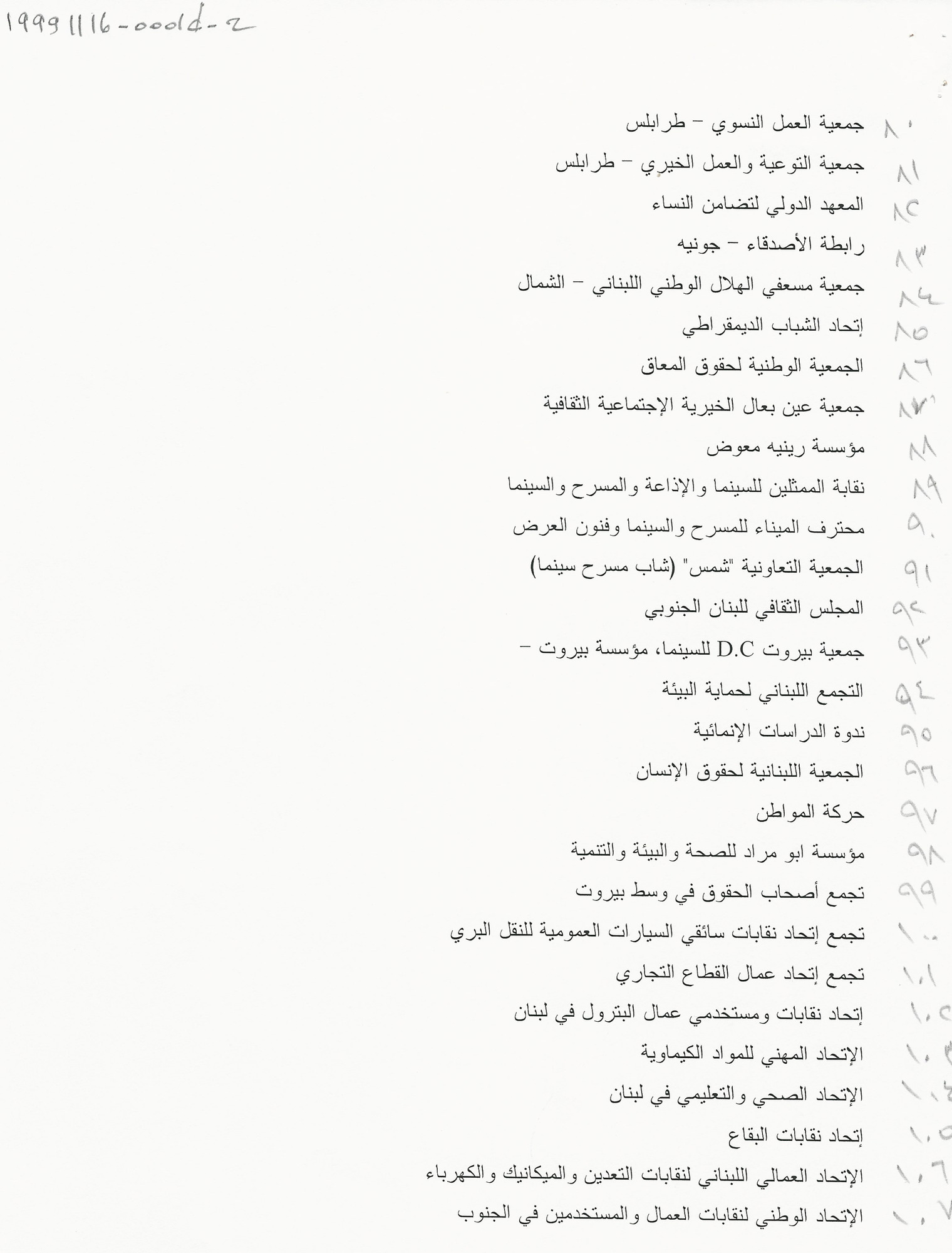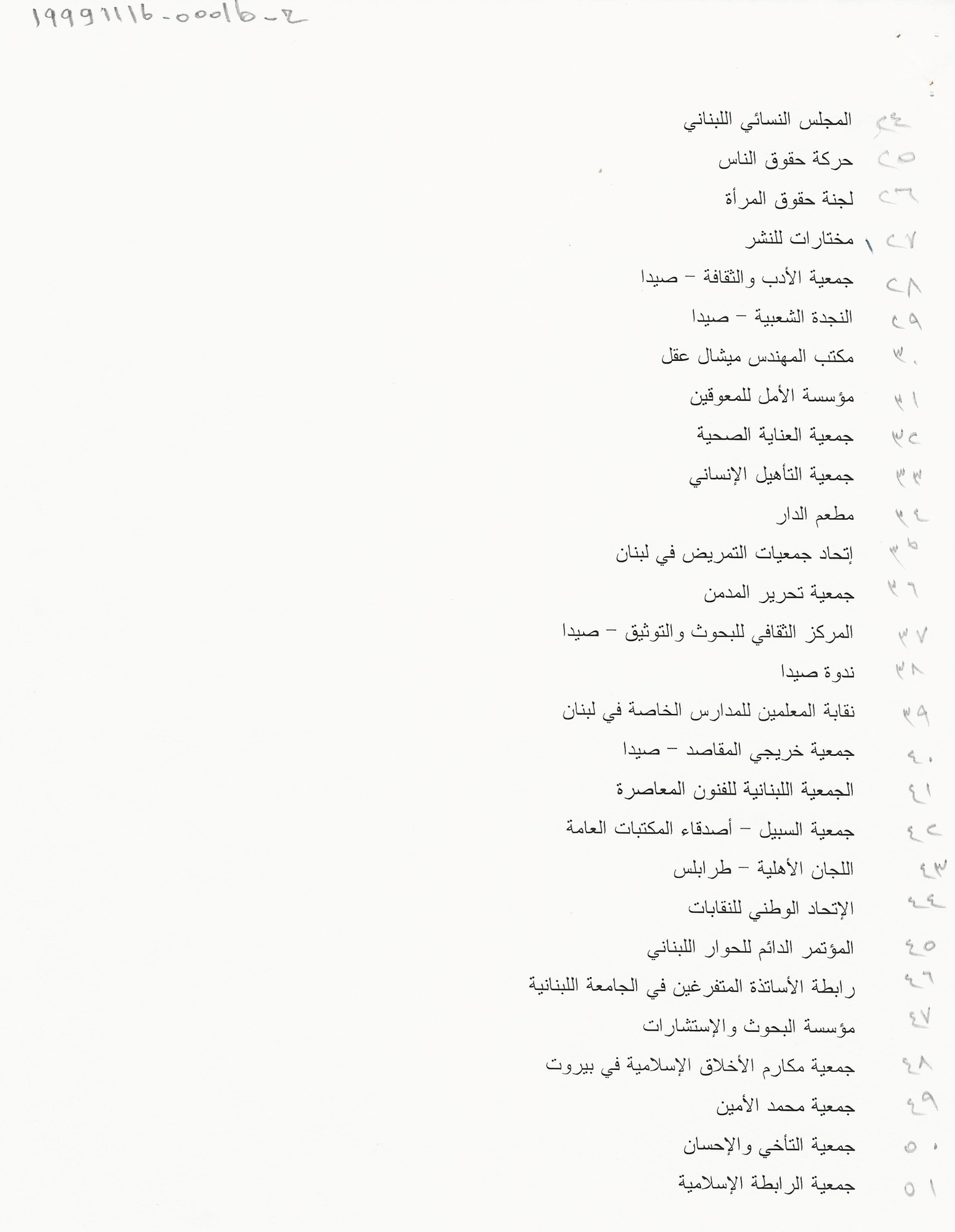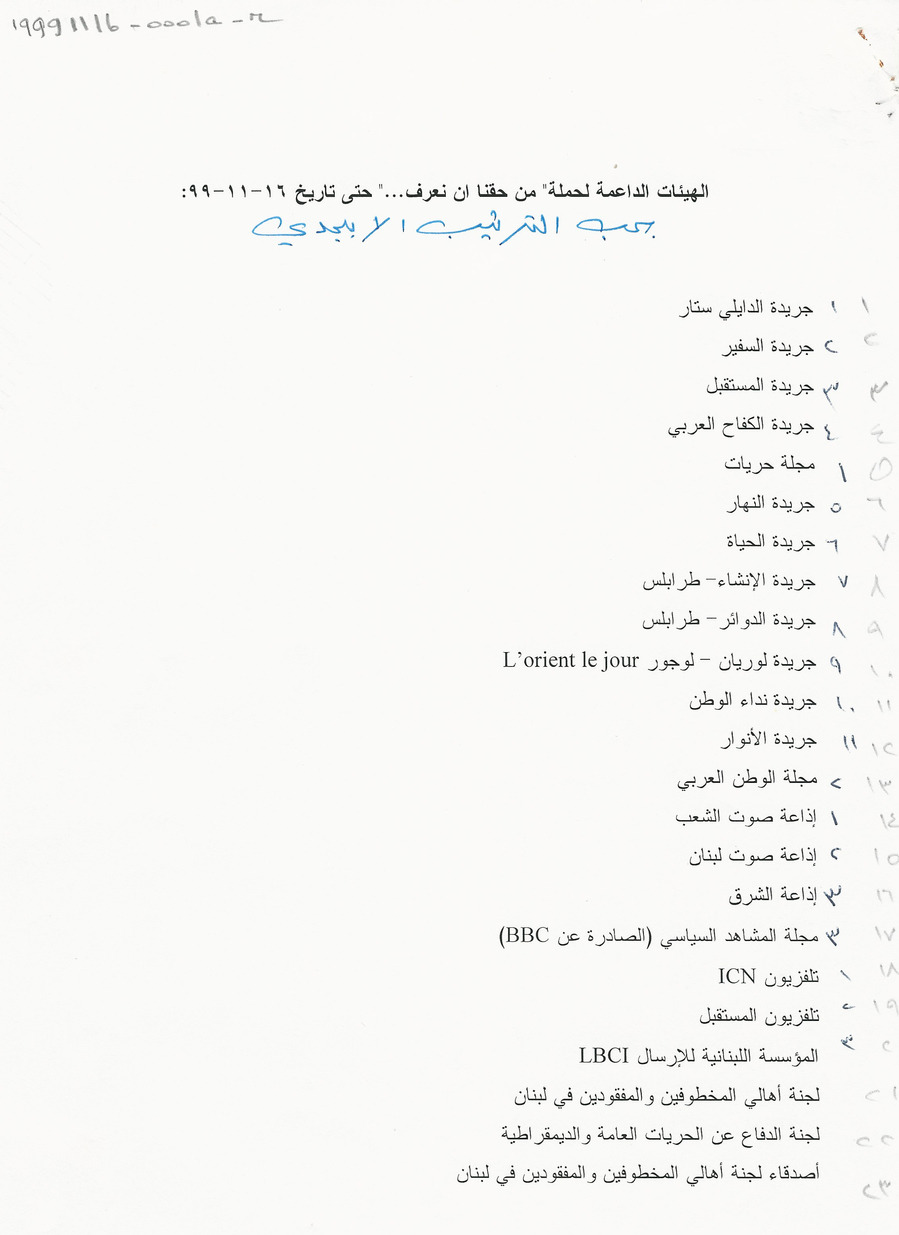 - ar الهيئات الداعمة لحملة من حقنا ان نعرف حتى تاريخ 16، 11، 99