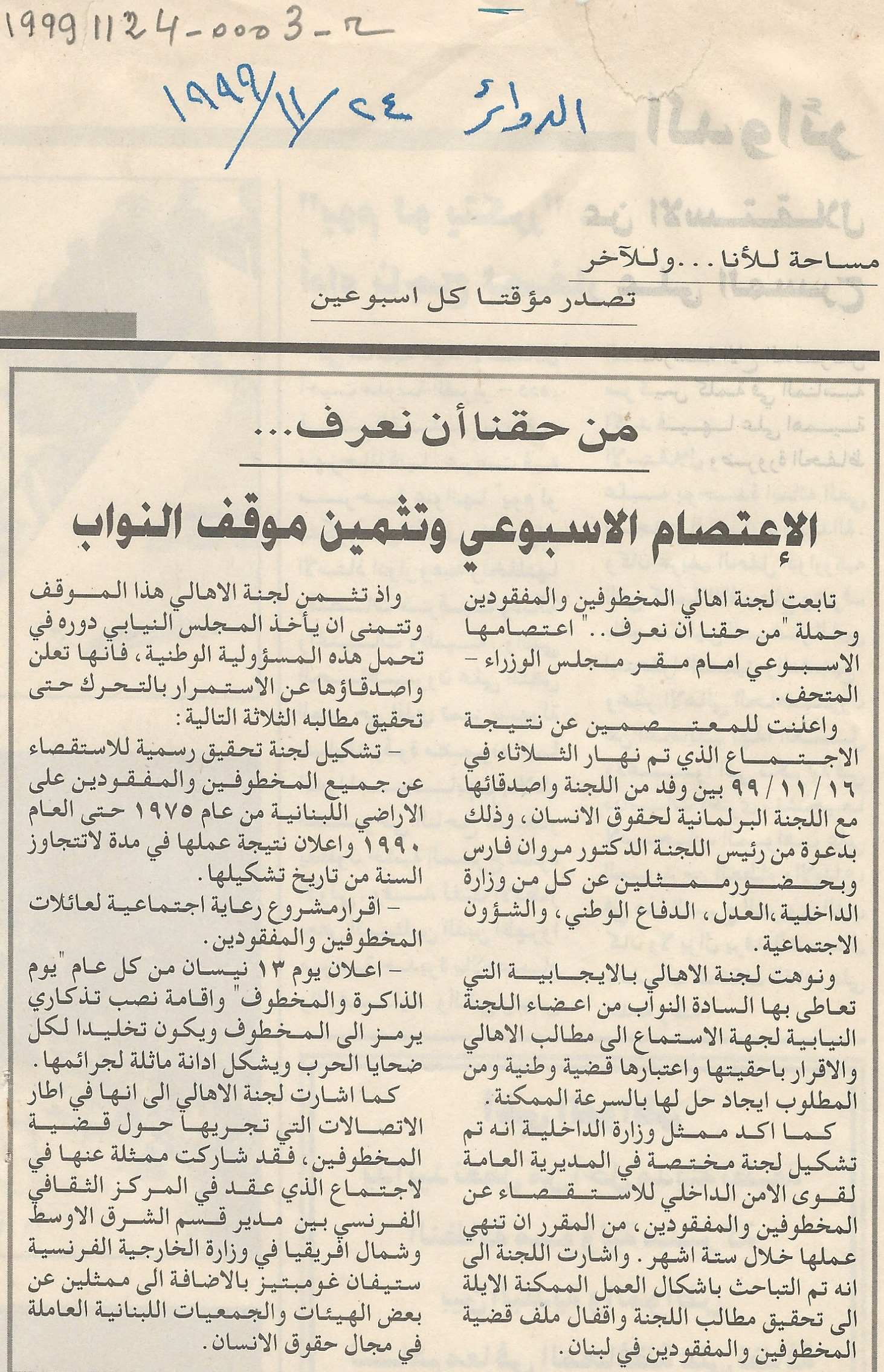 - ar من حقنا ان نعرف: الاعتصام الاسبوعي وتثمين موقف النواب