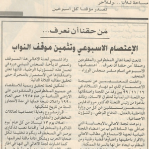 من حقنا ان نعرف: الاعتصام الاسبوعي وتثمين موقف النواب
