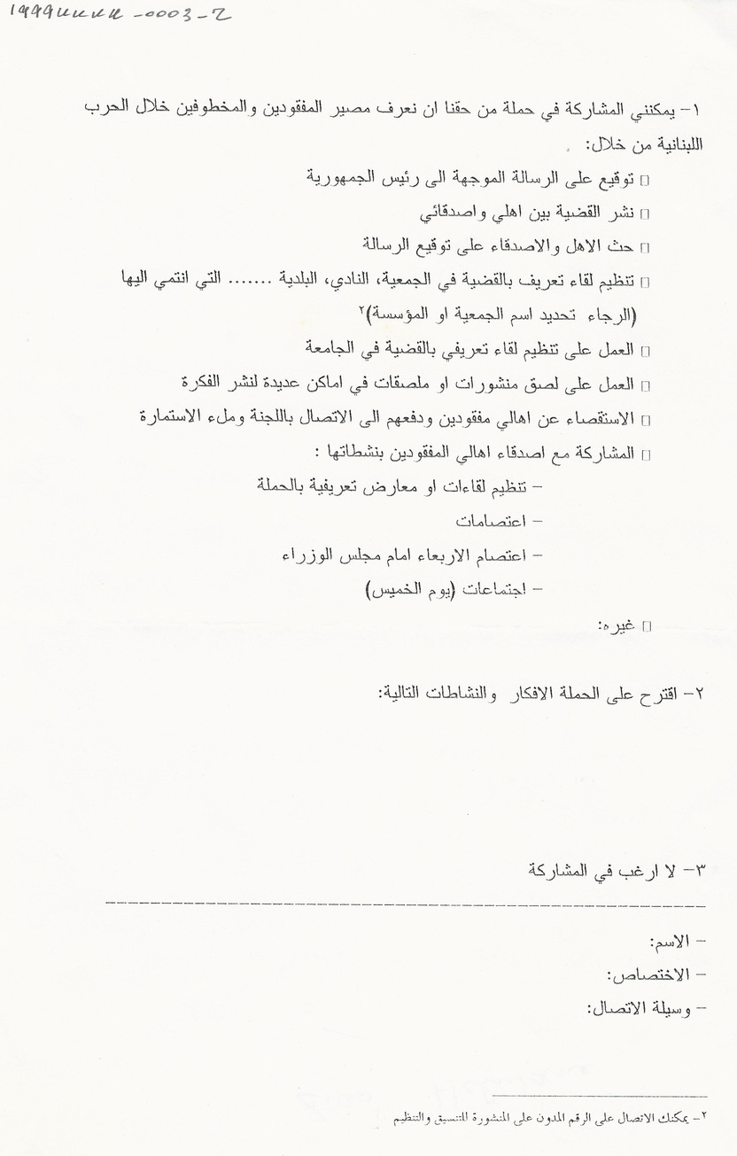 - en I can participate in the campaign entitled “It is our right to know the fate of the missing and kidnapped during the Lebanese war.”