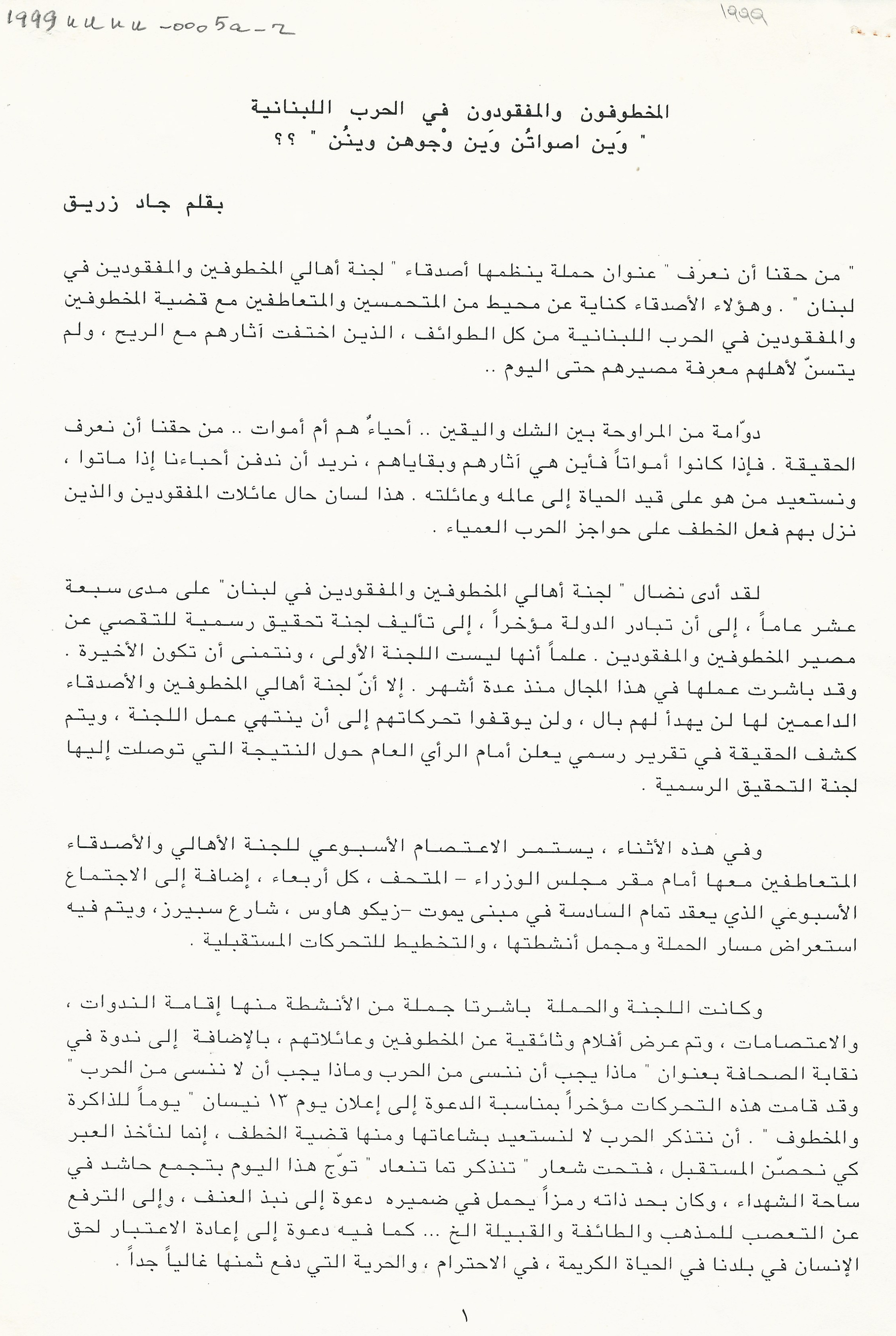 - en Where are the voices of the kidnapped and missing during the Lebanese war? Where are their faces? Where are they?