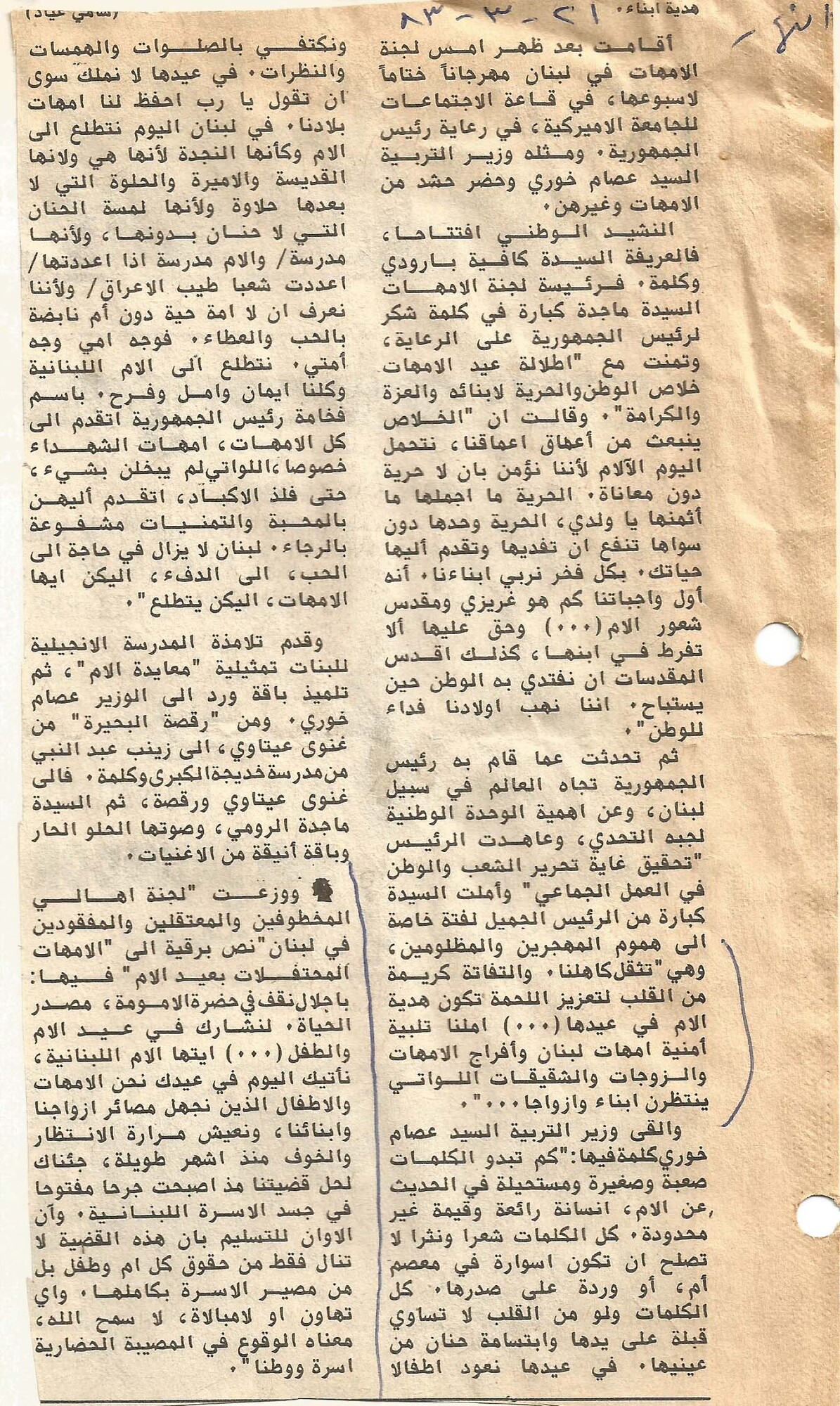 - ar اقامت بعد ظهر امس لجنة الامهات في لبنان مهرجانا ختاما لاسبوعها