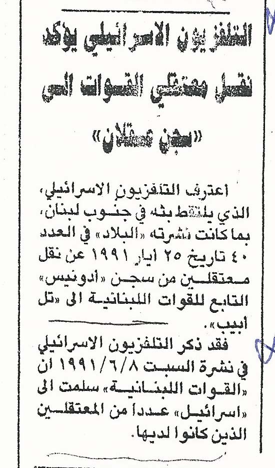 - en Israel’s TV channel confirms the transfer of the detainees held by the Lebanese Forces to Askalan prison.