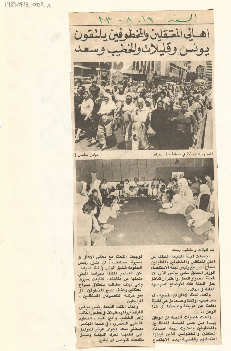 - en The Families of the Detained and Kidnapped meet with Younes, Koleilat, al-Khatib, and Saad.