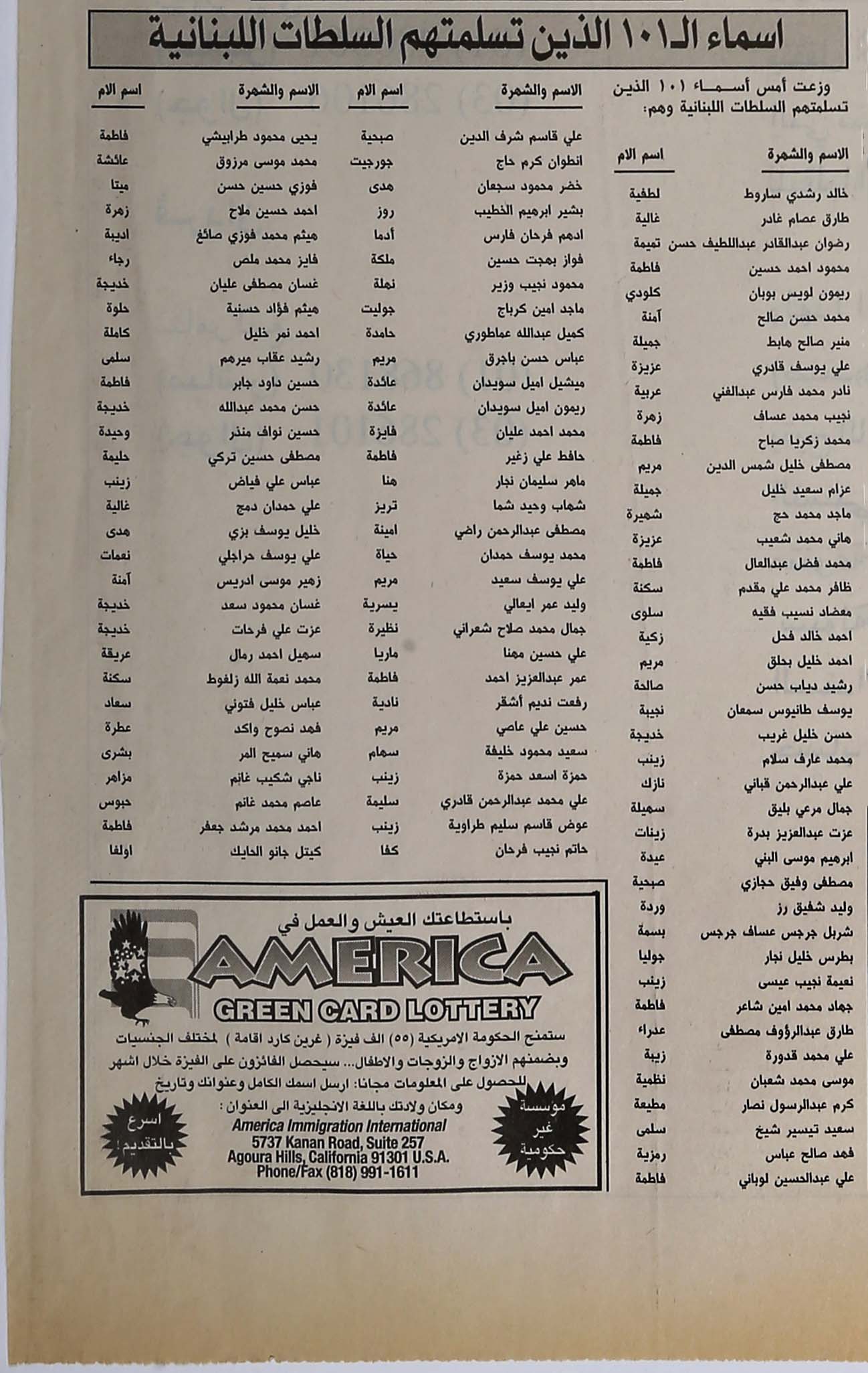 - ar اسماء الـ 101 الذين تسلمتهم السلطات اللبنانية