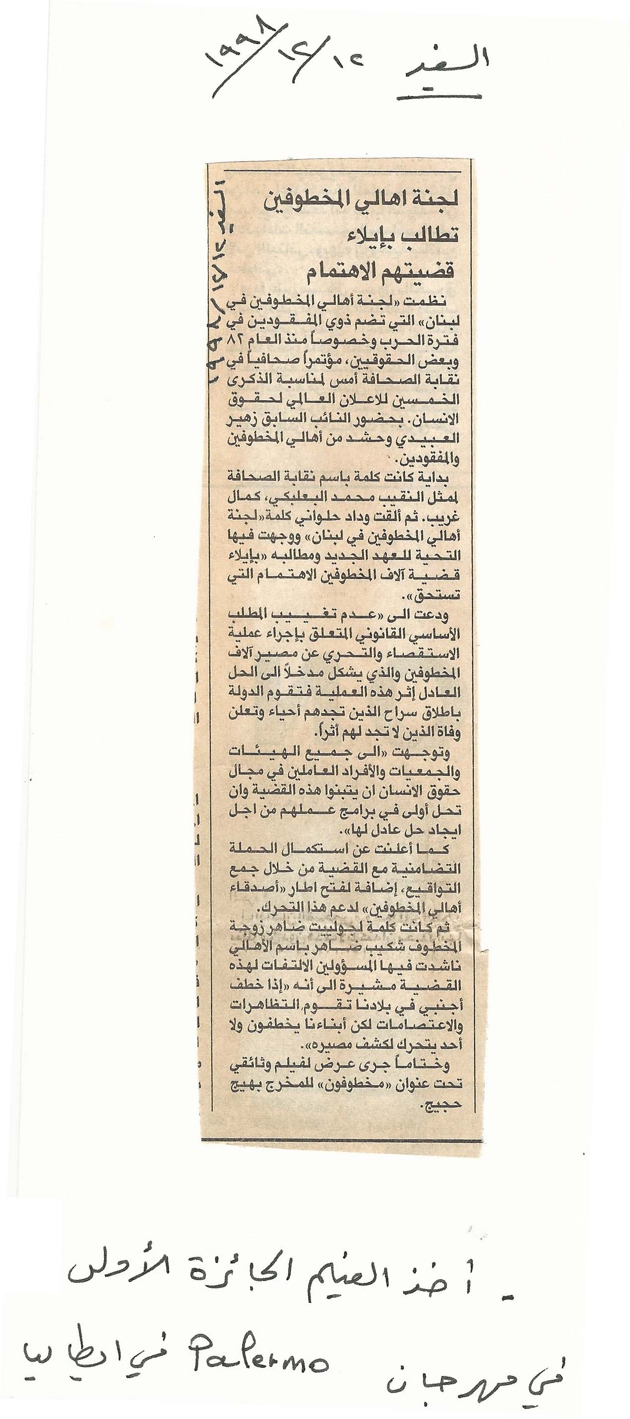 - ar لجنة اهالي المخطوفين تطالب بإيلاء قضيتهم الاهتمام