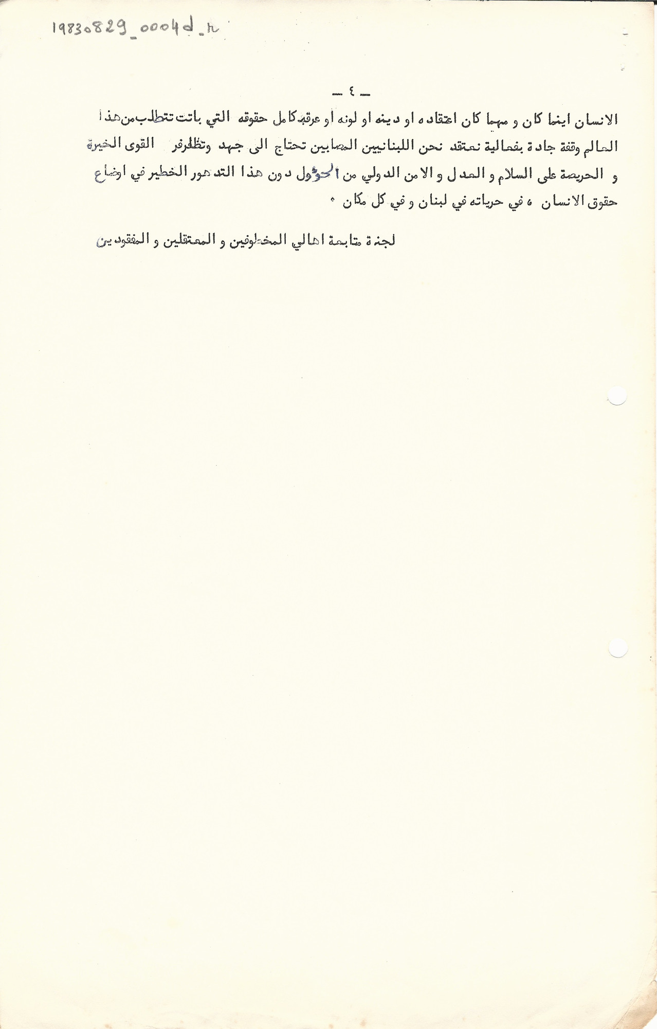نداء اهالي المعتقلين والمخطوفين والمفقودين