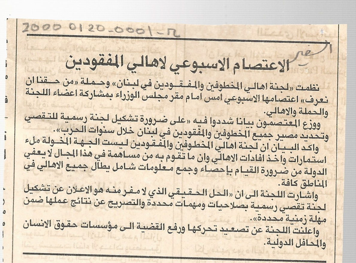 - ar الاعتصام الاسبوعي لأهالي المفقودين