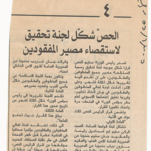- ar الحص شكل لجنة تحقيق لاستقصاء مصير المفقودين