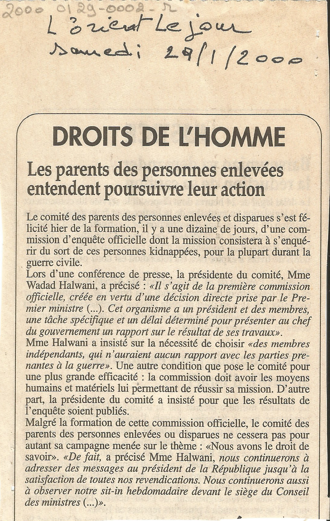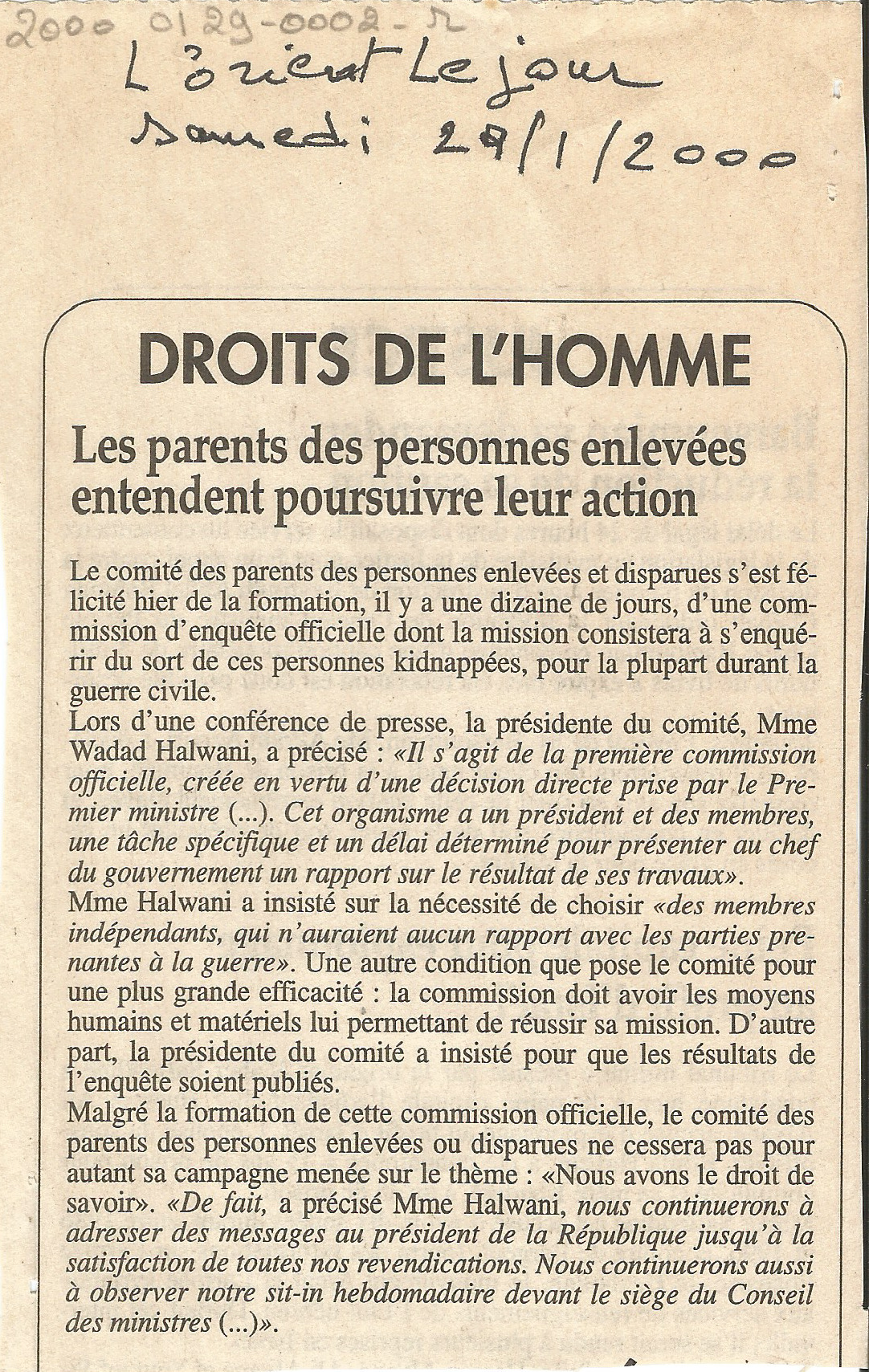 - fr Les parents des personnes enlevées entendent poursuivre leur action.