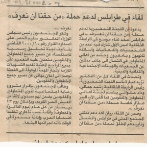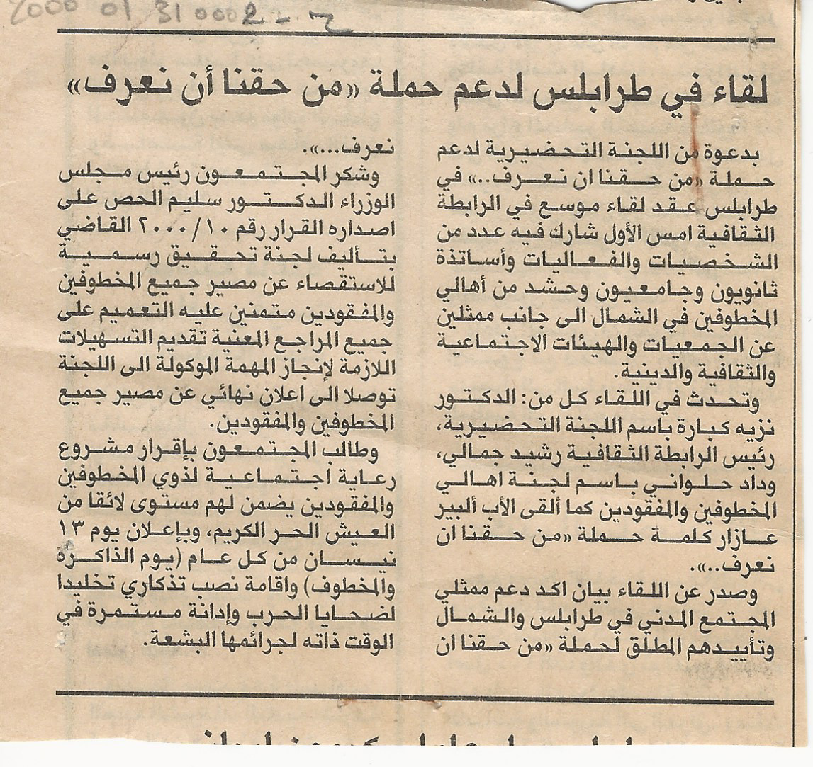 - ar لقاء في طرابلس لدعم حملة من حقنا ان نعرف
