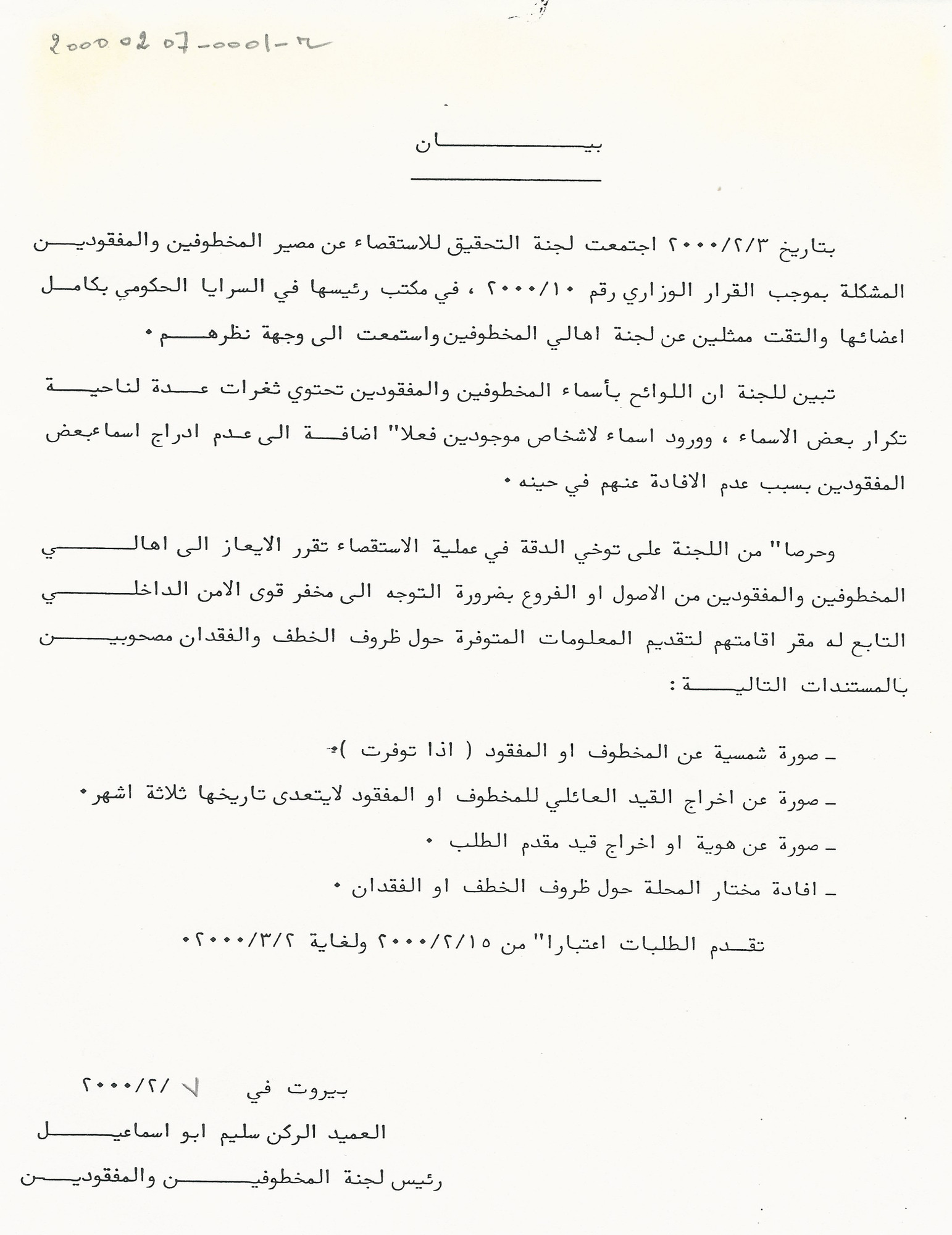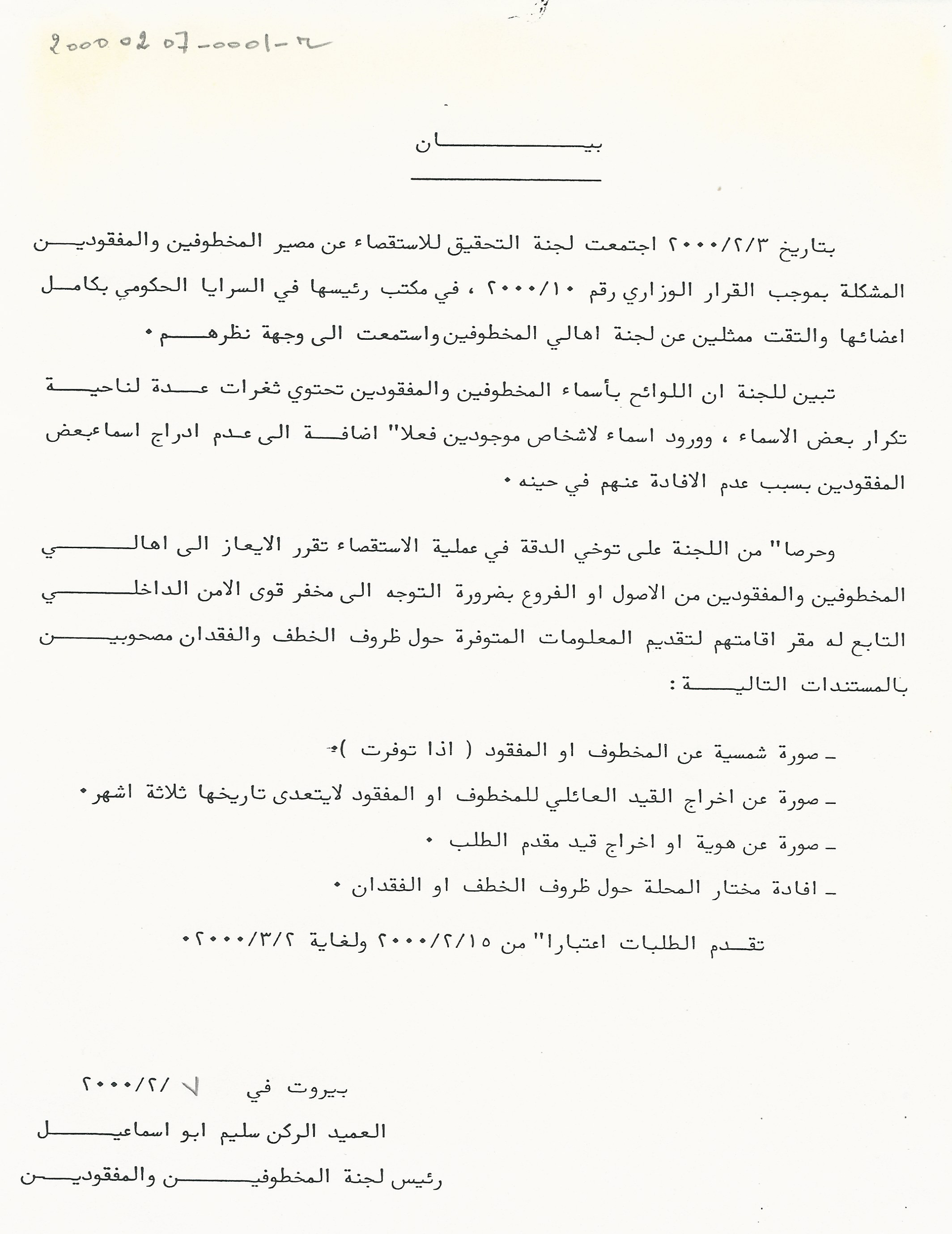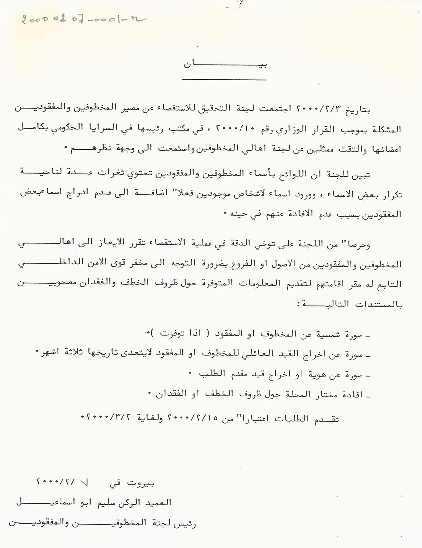 - ar لجنة التحقيق الرسمية تطلب مستندات اضافية من الاهالي