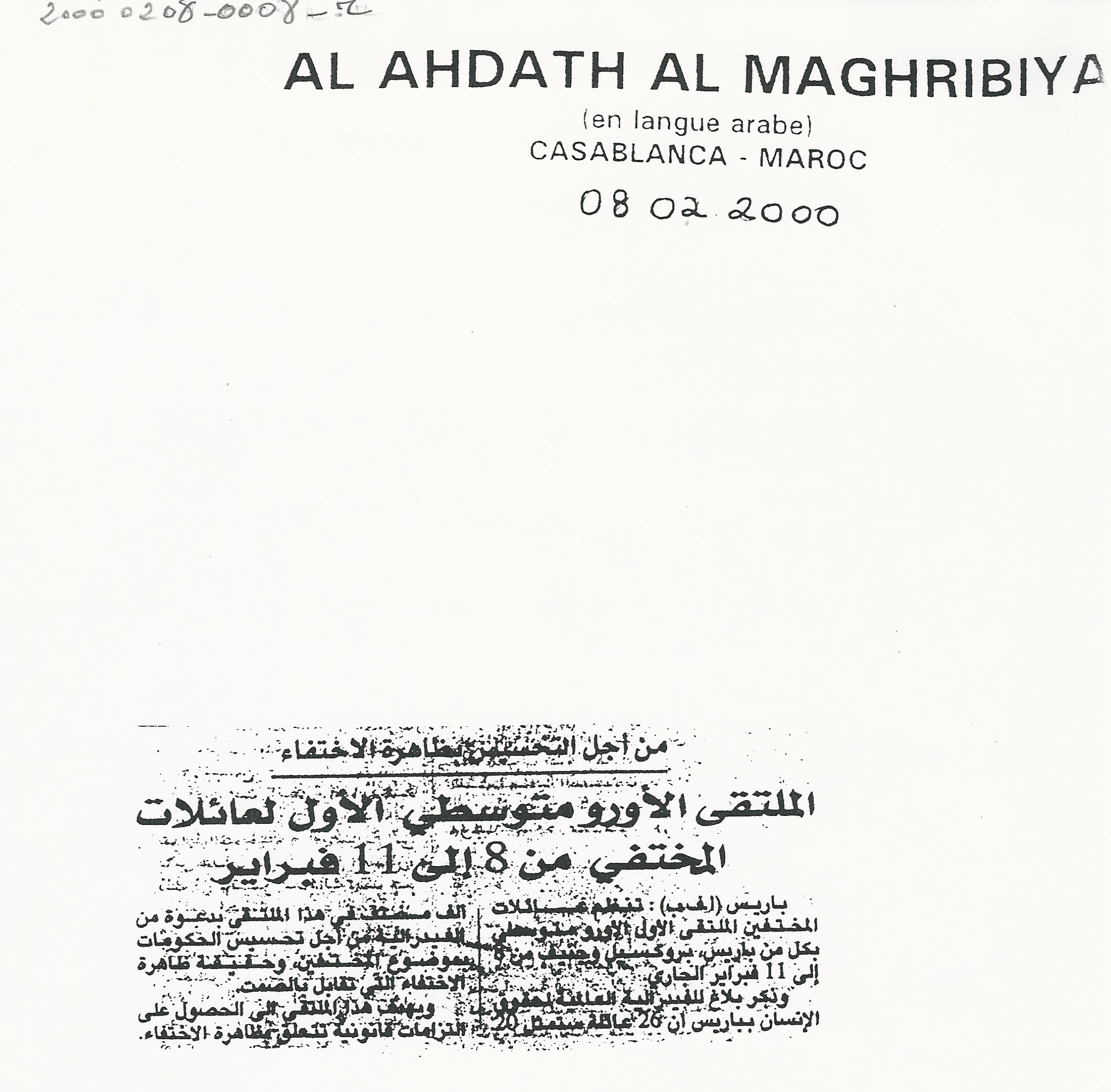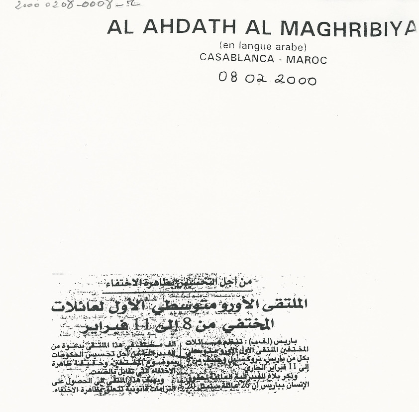 - ar الملتقى الاورو متوسطي الاول لعائلات المختفي من 8 الى 11 فبراير
