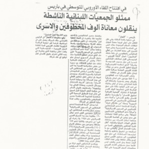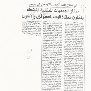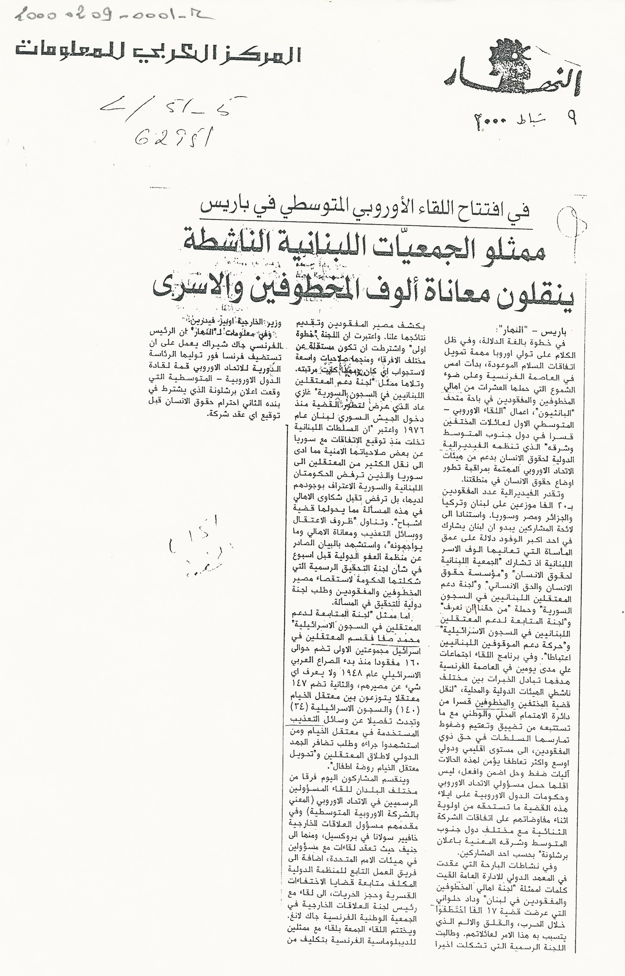 The representatives of the Lebanese active organizations speak of the sufferings of thousands of kidnapped and detained at the inauguration of the Euro-Mediterranean Encounter in Paris.