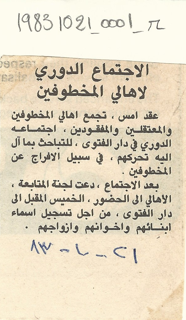 - ar الاجتماع الدوري لاهالي المخطوفين