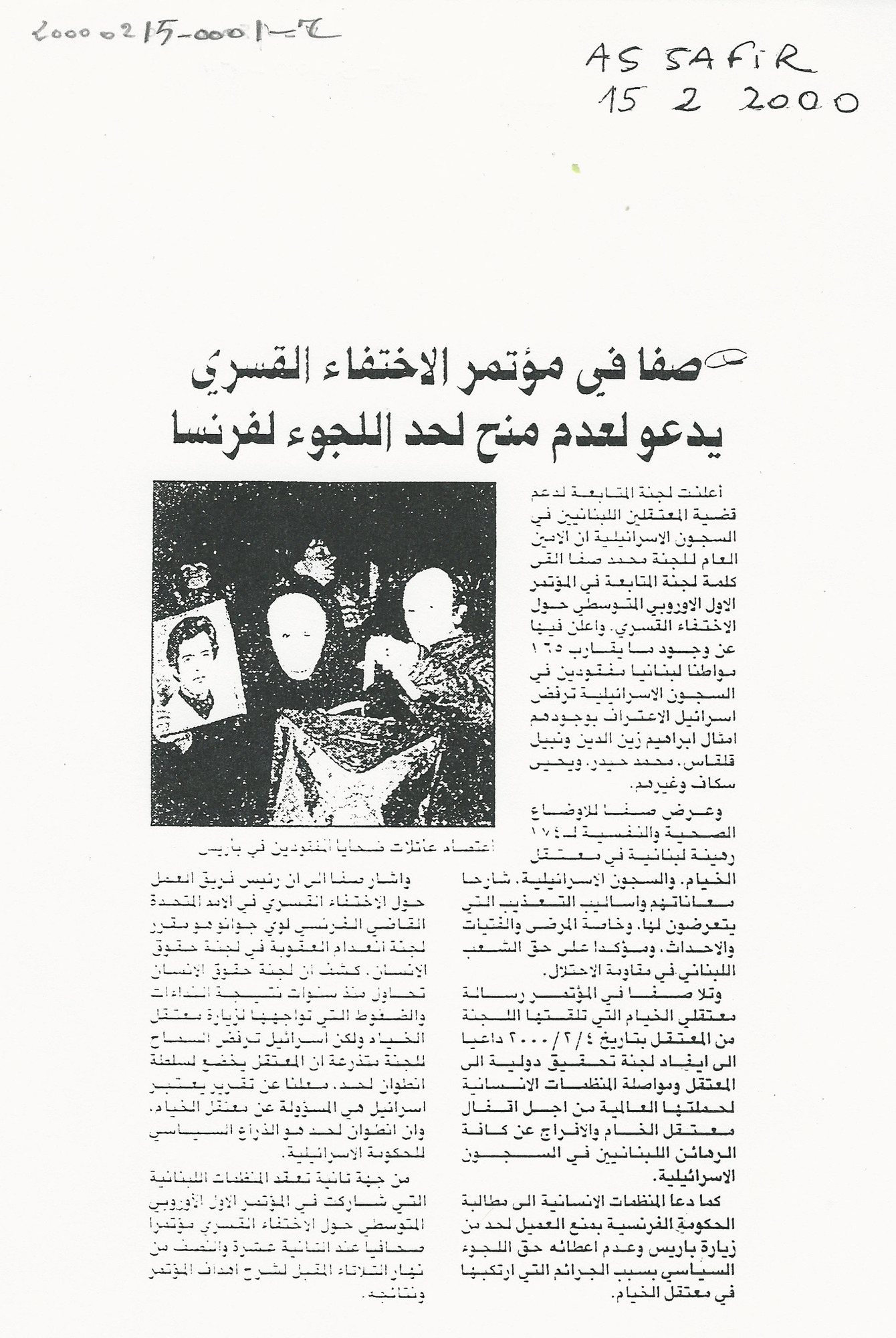 - ar صفا في مؤتمر الاختفاء القسري يدعو لعدم منح لحد اللجوء لفرنسا