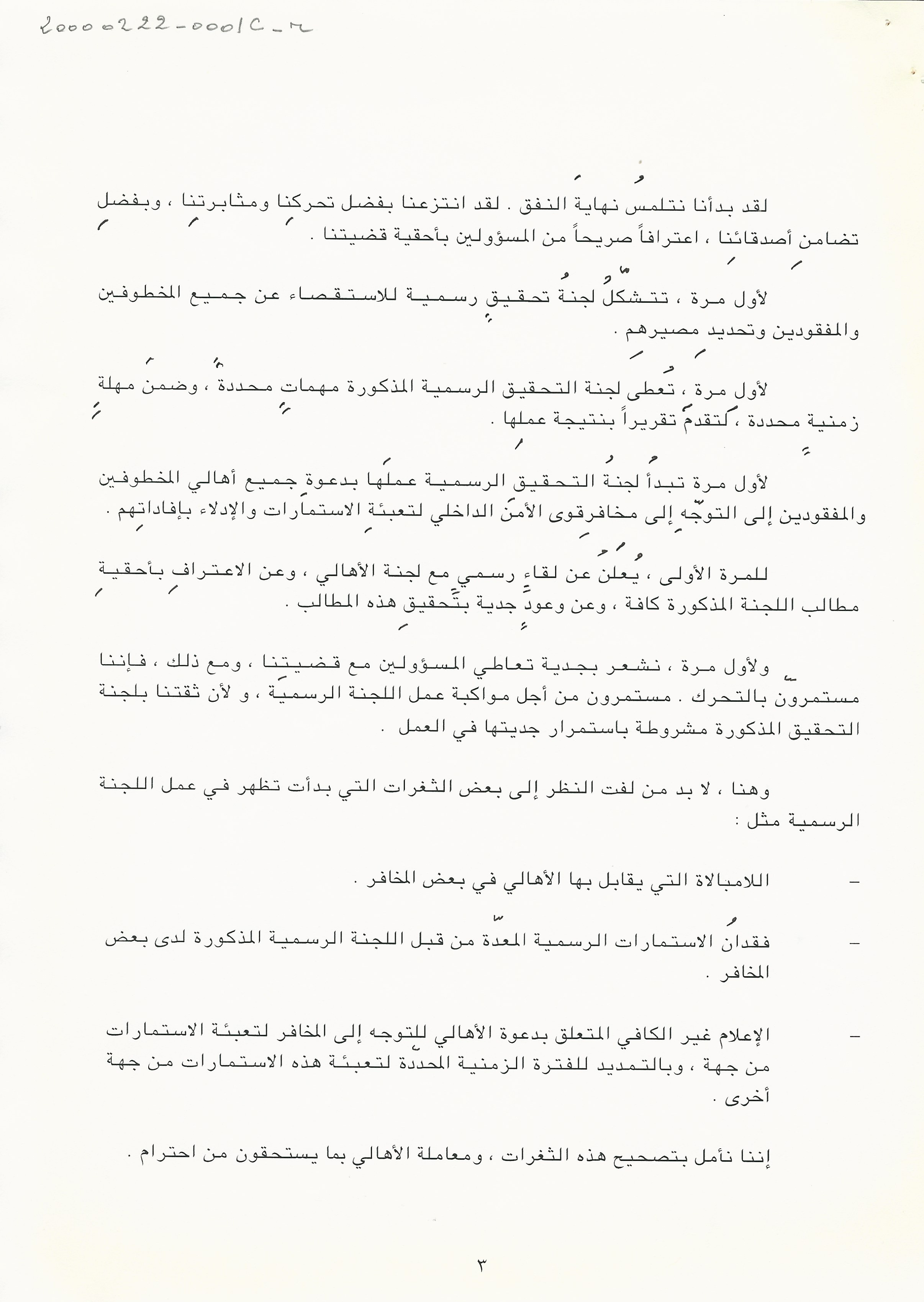 The statement of the Committee of the Families of the Kidnapped and Missing in Lebanon