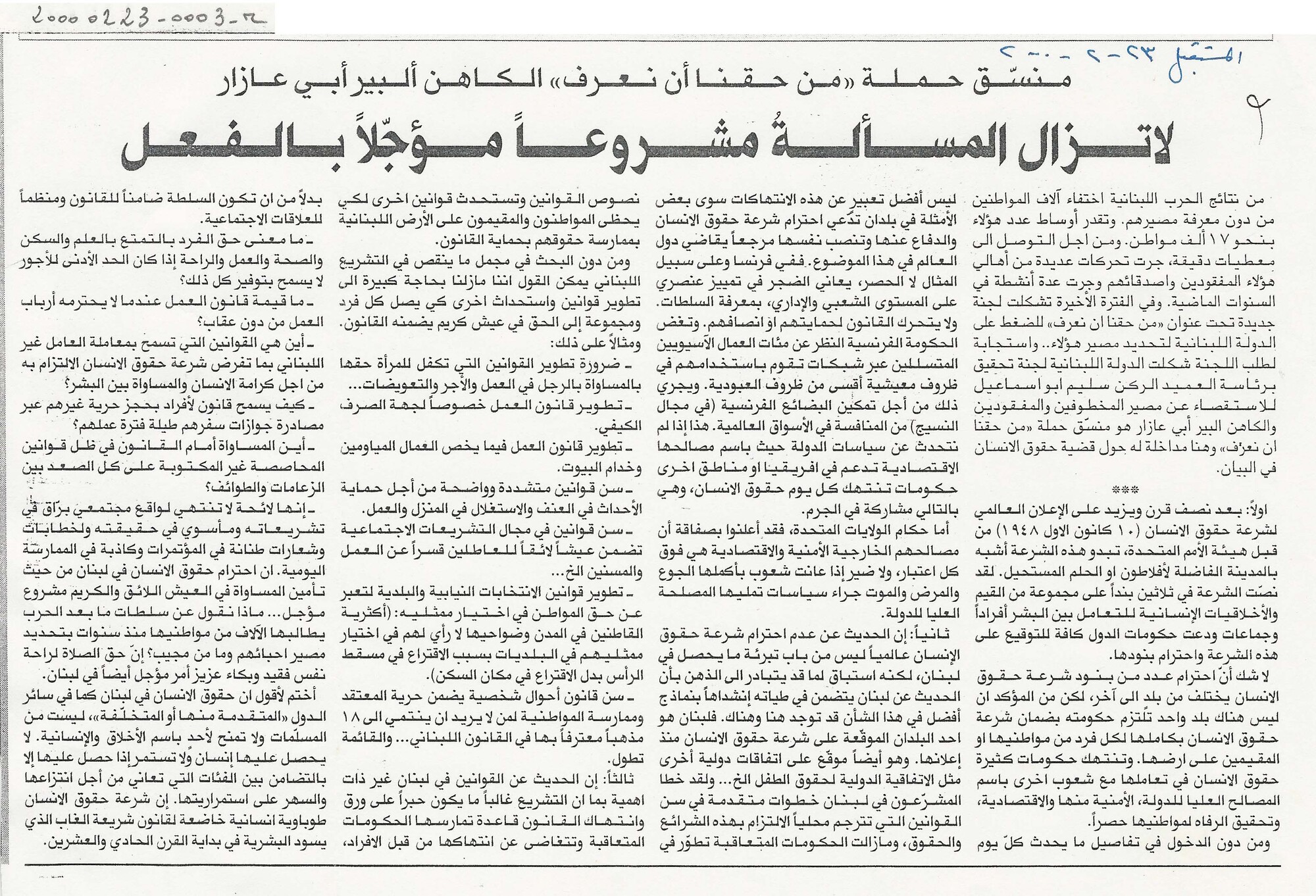 - ar منسق حملة من حقنا ان نعرف الكاهن البير ابي عازار: لا تزال المسألة مشروعا مؤجلا بالفعل