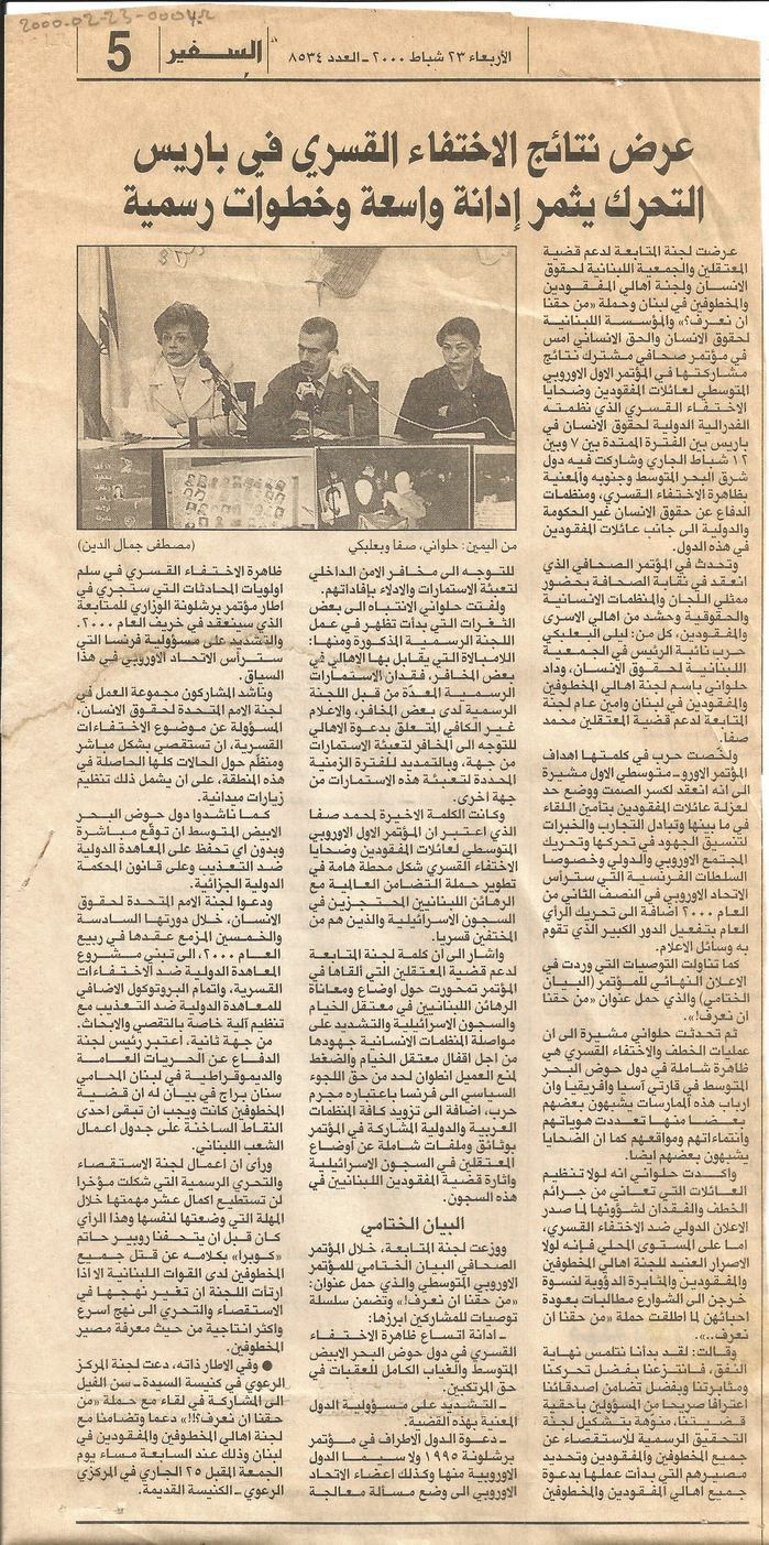 عرض نتائج الاختفاء القسري في باريس: التحرك يثمر ادانة واسعة وخطوات رسمية