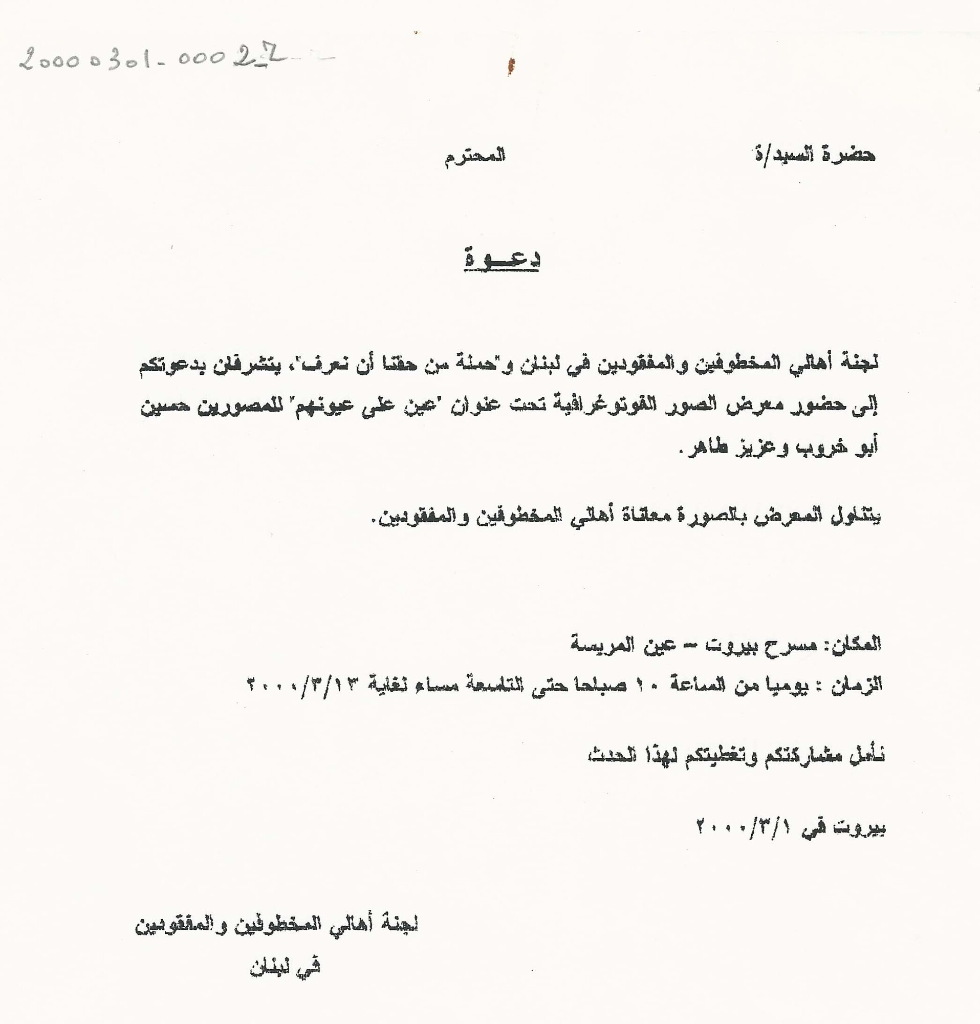 - ar دعوة الى معرض صور عين على عيونهم