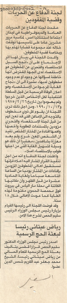 - ar لجنة الدفاع عن الحريات وقضية المفقودين