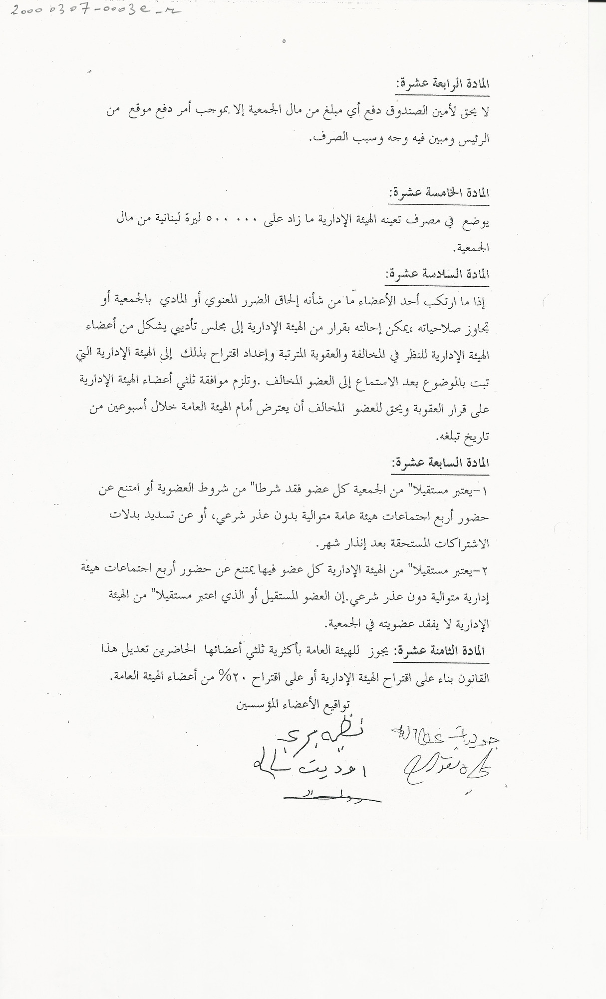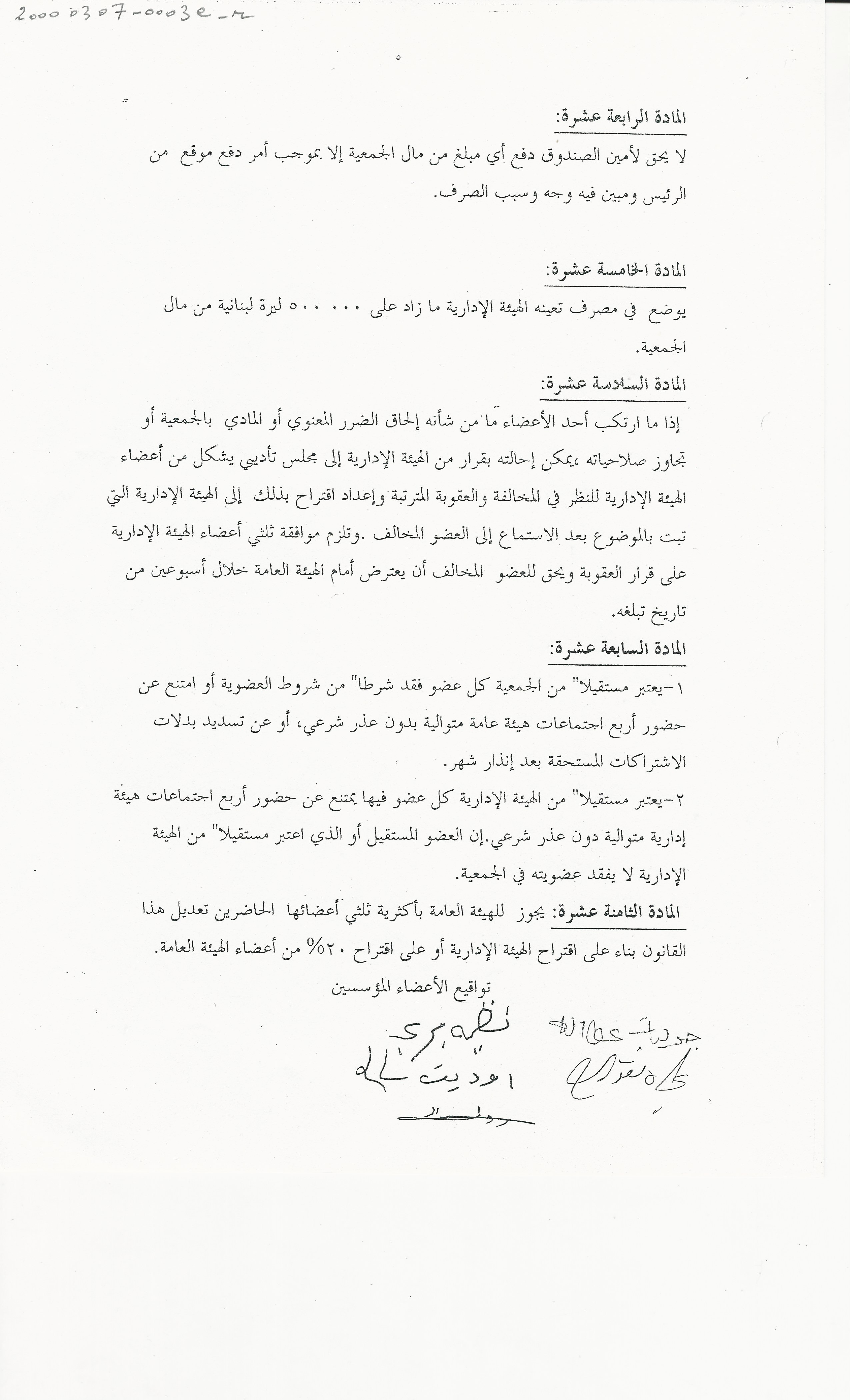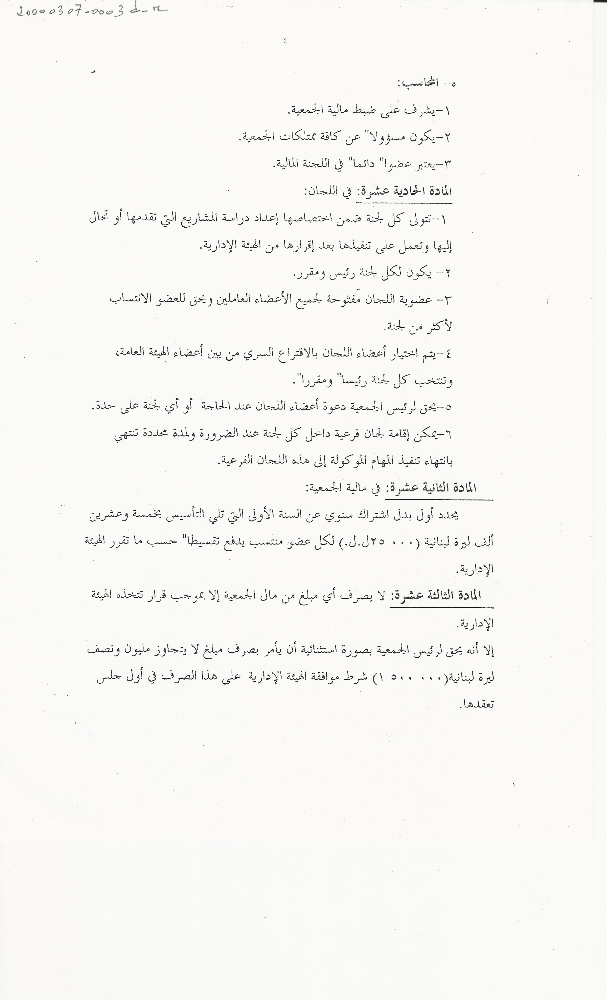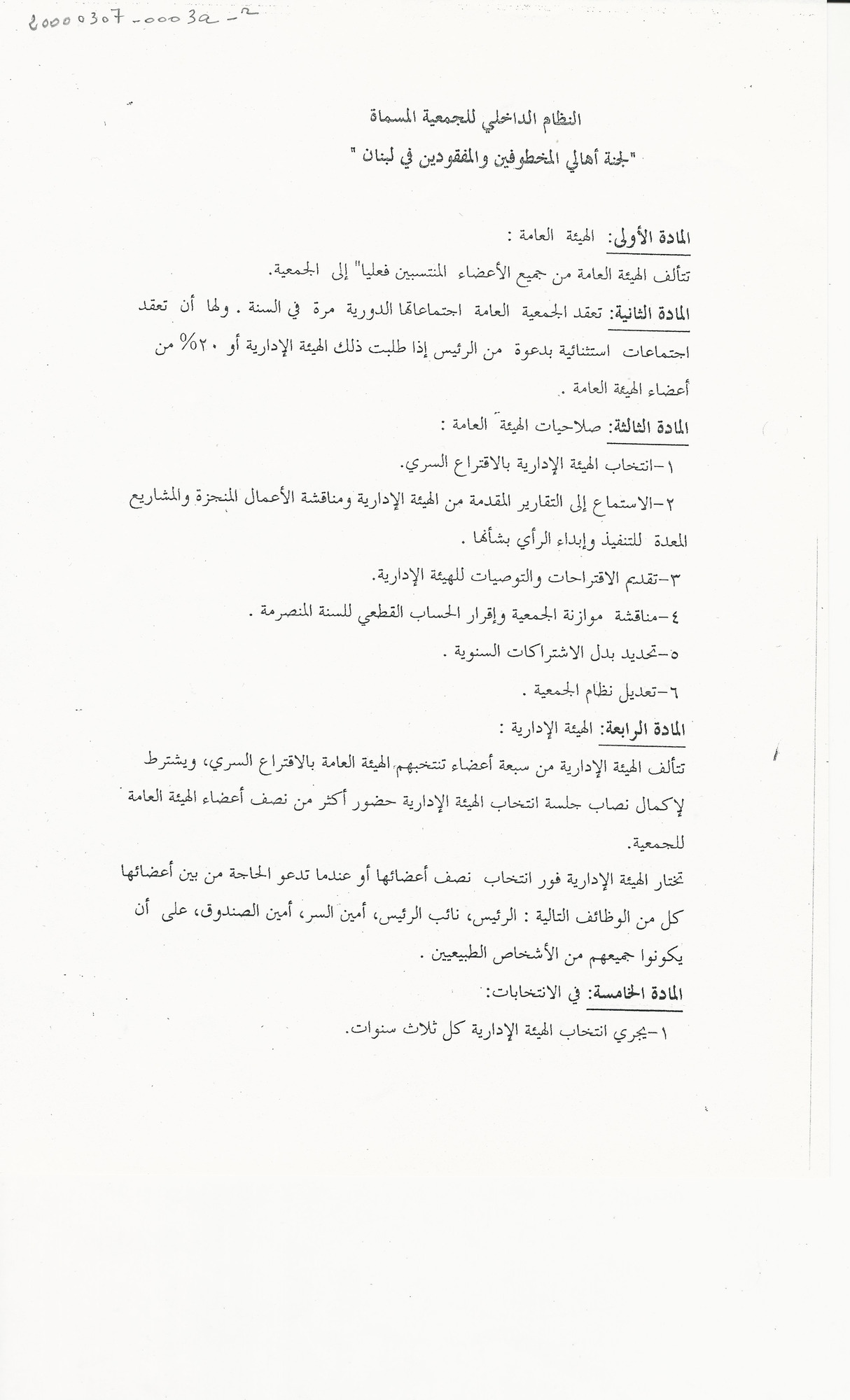 The by-laws of an organization titled the Committee of the Families of the Kidnapped and Missing in Lebanon