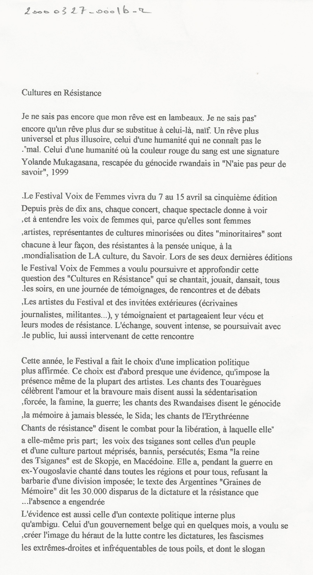 - fr Invitation et programme de la 5eme edition du Festival Voix De Femmes